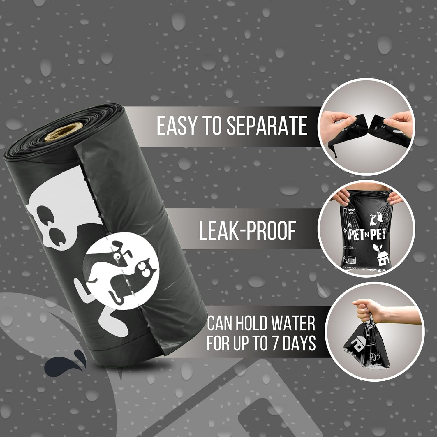 Deja atrás las preocupaciones por los residuos: las bolsas para perros PET N PET son 38% a base de plantas y 62% polietileno. Esto le da menos de qué preocuparse durante sus paseos con su amigo mascota al eliminar el 38% del plástico.