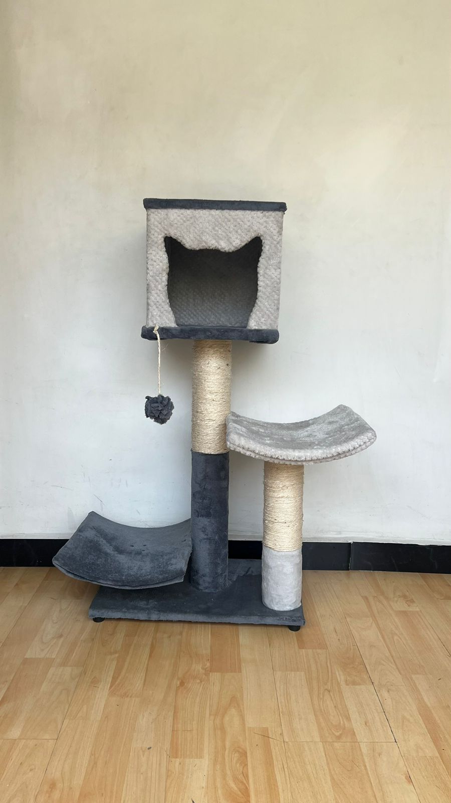Gimnasio con medidas de Alto 95 cm x frente 50 cm x Profundidad de 30 cm con 2 rascadores, 1 casa , 2 posadero y 2 niveles.