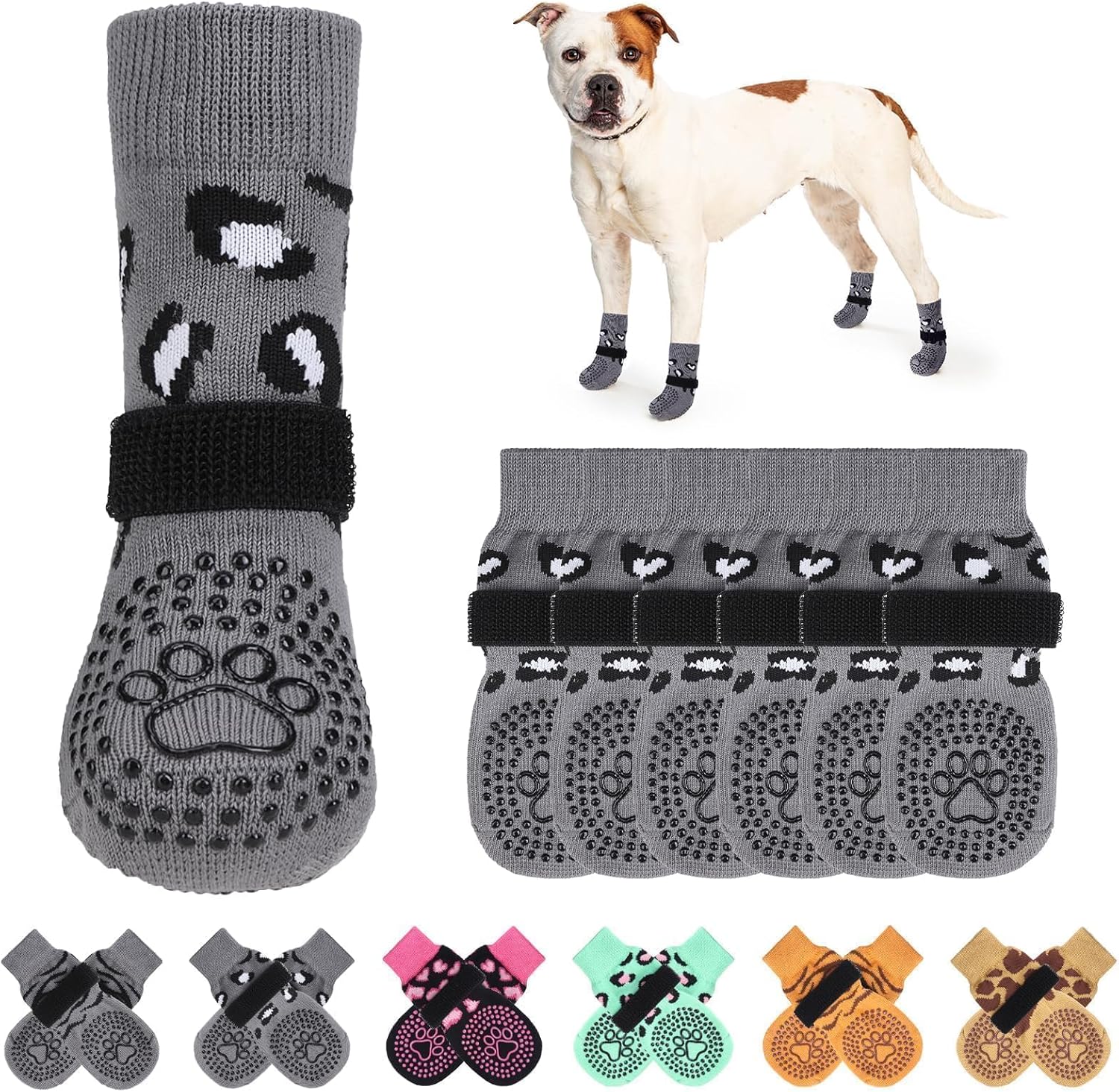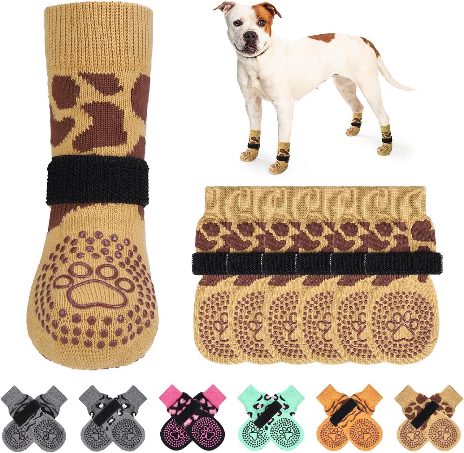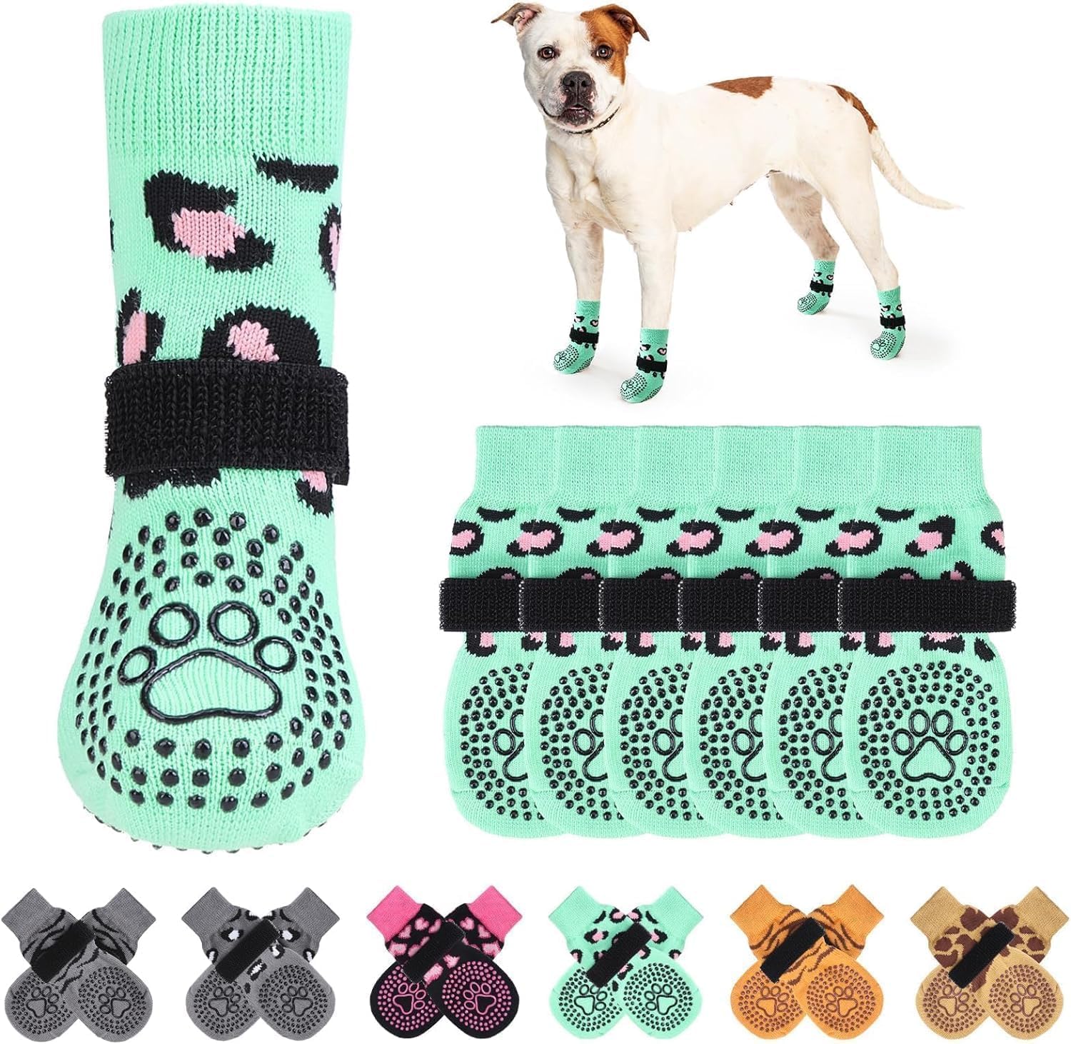 6 Calcetines Antideslizantes con Protector de Patas para Mascotas