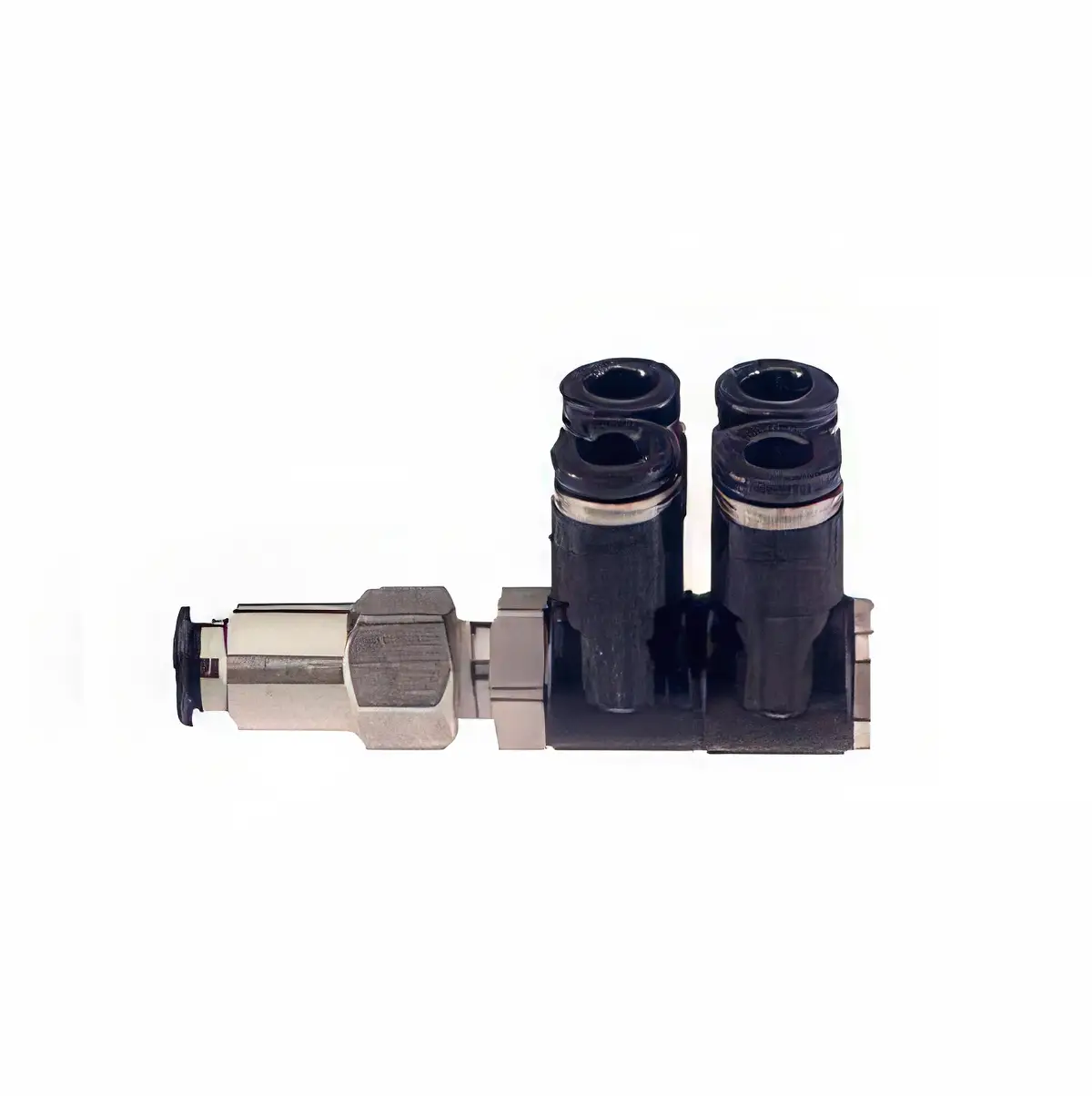 - Para liberar una conexión, presiona el anillo del puerto hacia el cuerpo del distribuidor y extrae el tubo a la vez.