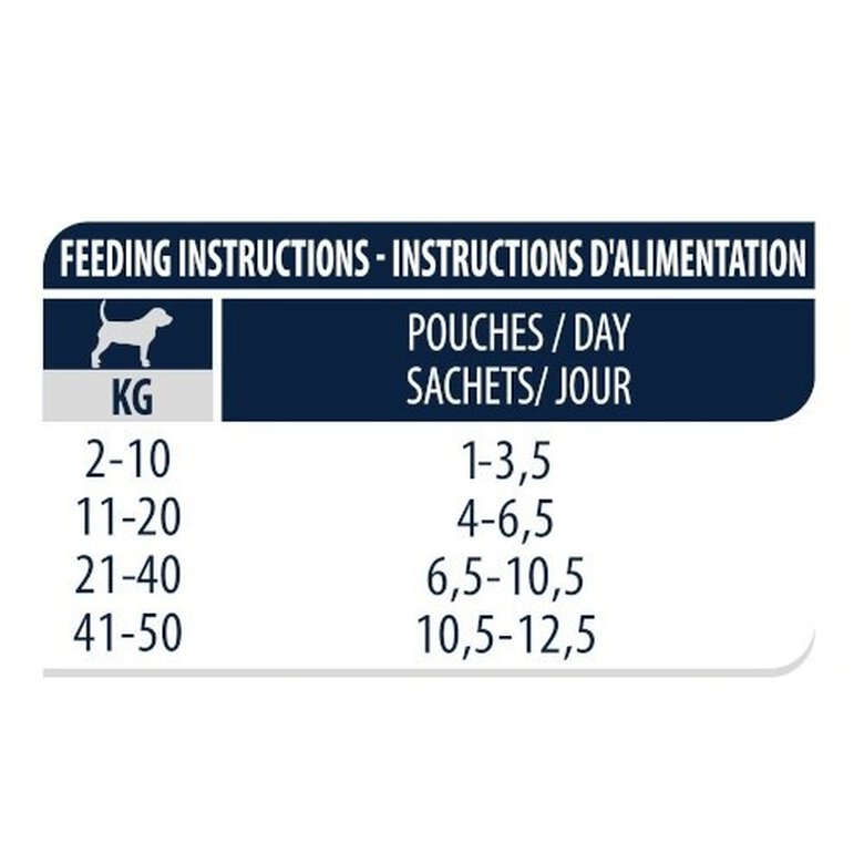 Componentes analíticos: Proteína bruta 8,0%, grasa bruta 5%, fibra bruta 0,25%, ceniza bruta 2,2%, humedad 79%, ácido linoleico (omega 6) 1,7%, EPA + DHA (omega 3) 0,08%.