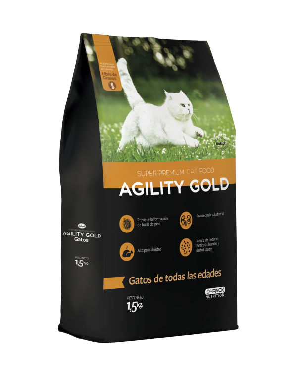 El concentrado para gatos Agility Gold es un concentrado ideal para suministrar en todas las etapas de la vida de los gatos. Su fórmula libre de granos será ideal para proporcionar una alimentación adecuada y una digestión más rápida. Contiene niveles equilibrados de minerales que favorecerán la salud renal y es perfecta para evitar la formación de las bolas de pelo. Es un concentrado súper premium que será el favorito de tu gato, gracias a su rico sabor proveniente de proteína animal real.