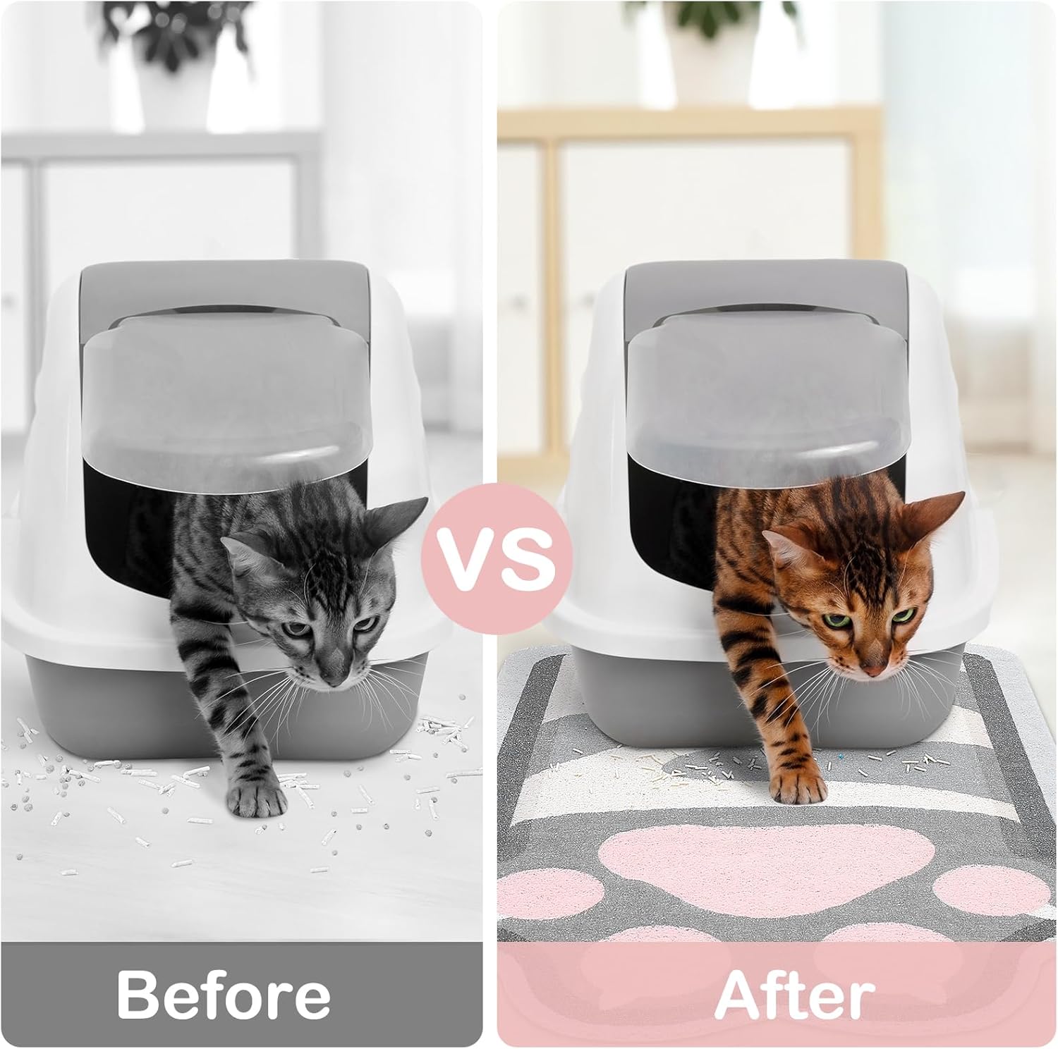 Recoge eficazmente la arena para gatos: la alfombra para arena para gatos tiene un alcance lo suficientemente grande como para no solo atrapar bien la arena para gatos caída, sino que también proporciona un buen lugar para que el gato descanse y juegue.