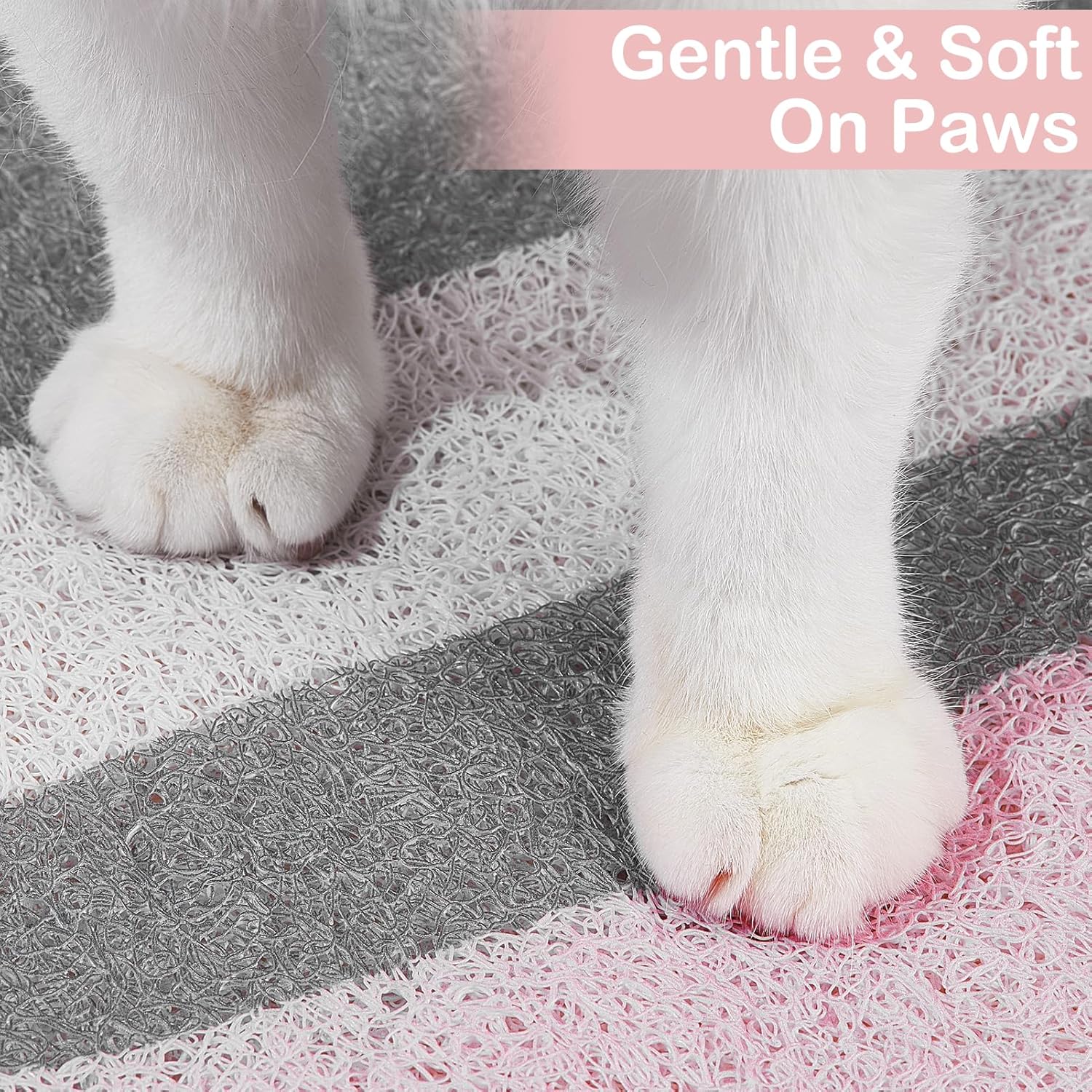 Suave y cómoda: la alfombrilla para arena para gatos está hecha de alambre de bucle de PVC, que puede crear una sensación cómoda y acolchada para las sensibles patas de su gato, suave y no daña las garras del gato, muy adecuada para su gato; Se puede doblar a voluntad, no es fácil de deformar.
