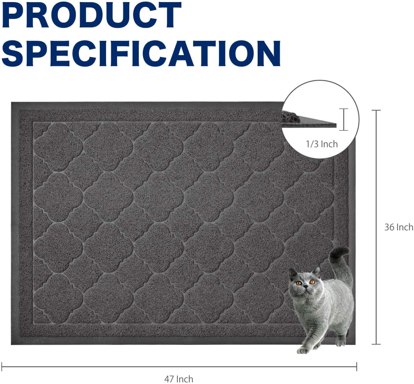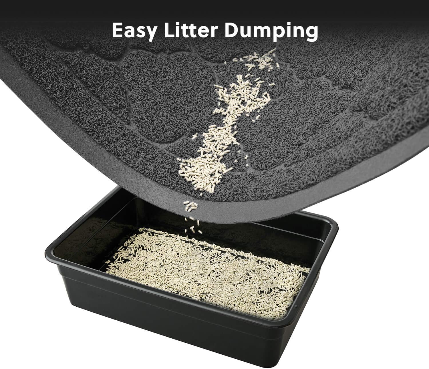 DISEÑO: Con un diseño creativo mejorado tras repetidas pruebas, esta alfombra presenta ranuras profundas y una malla superior, utilizando tecnología de fibra de alfombra para evitar que la arena caiga al suelo o se pegue a las patas peludas. La alfombra es lo suficientemente grande como para que tengas que barrer menos alrededor de la caja de arena.