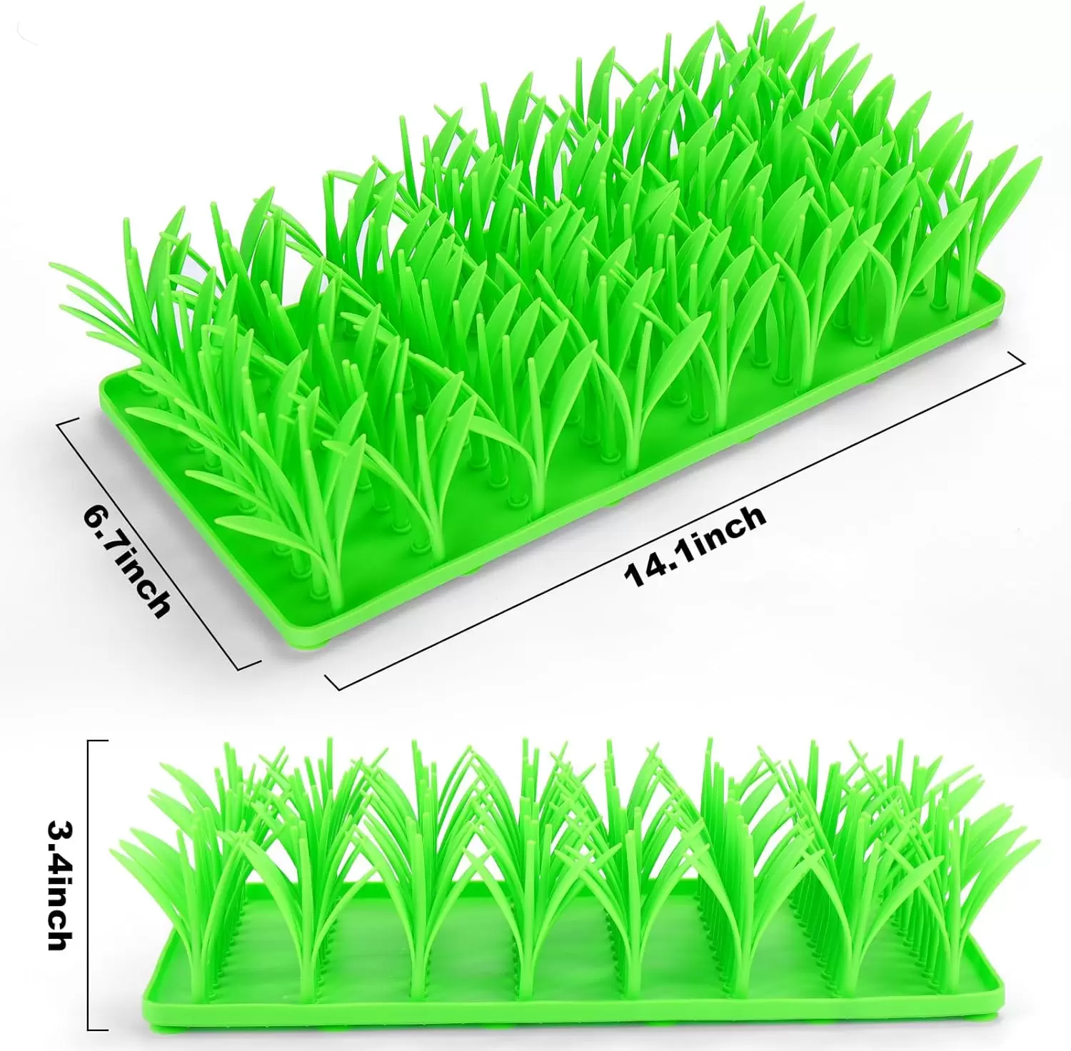 Tamaño: El tamaño de la alfombrilla de hierba de silicona es de 14.1 pulgadas de longitud, 6.7 pulgadas de ancho, 3.4 pulgadas de altura.