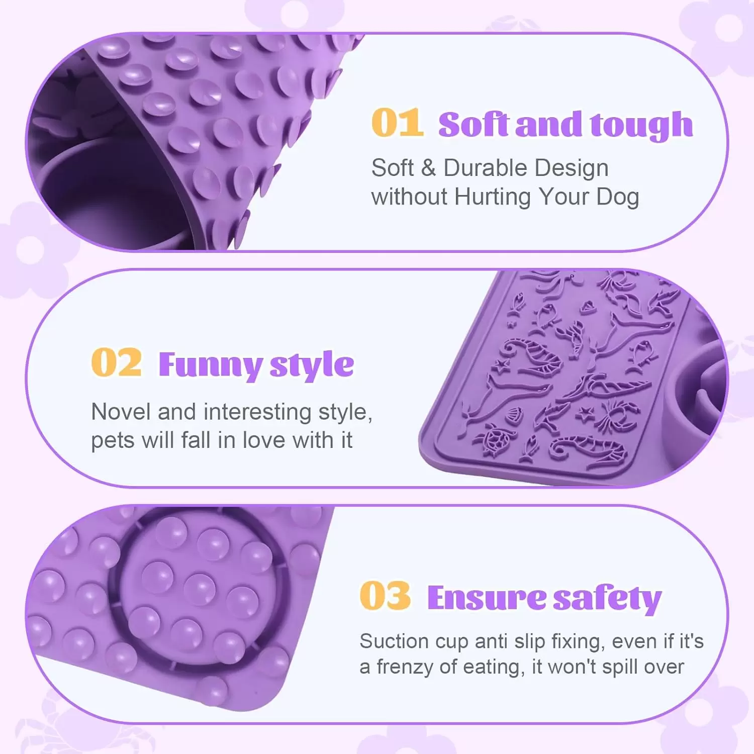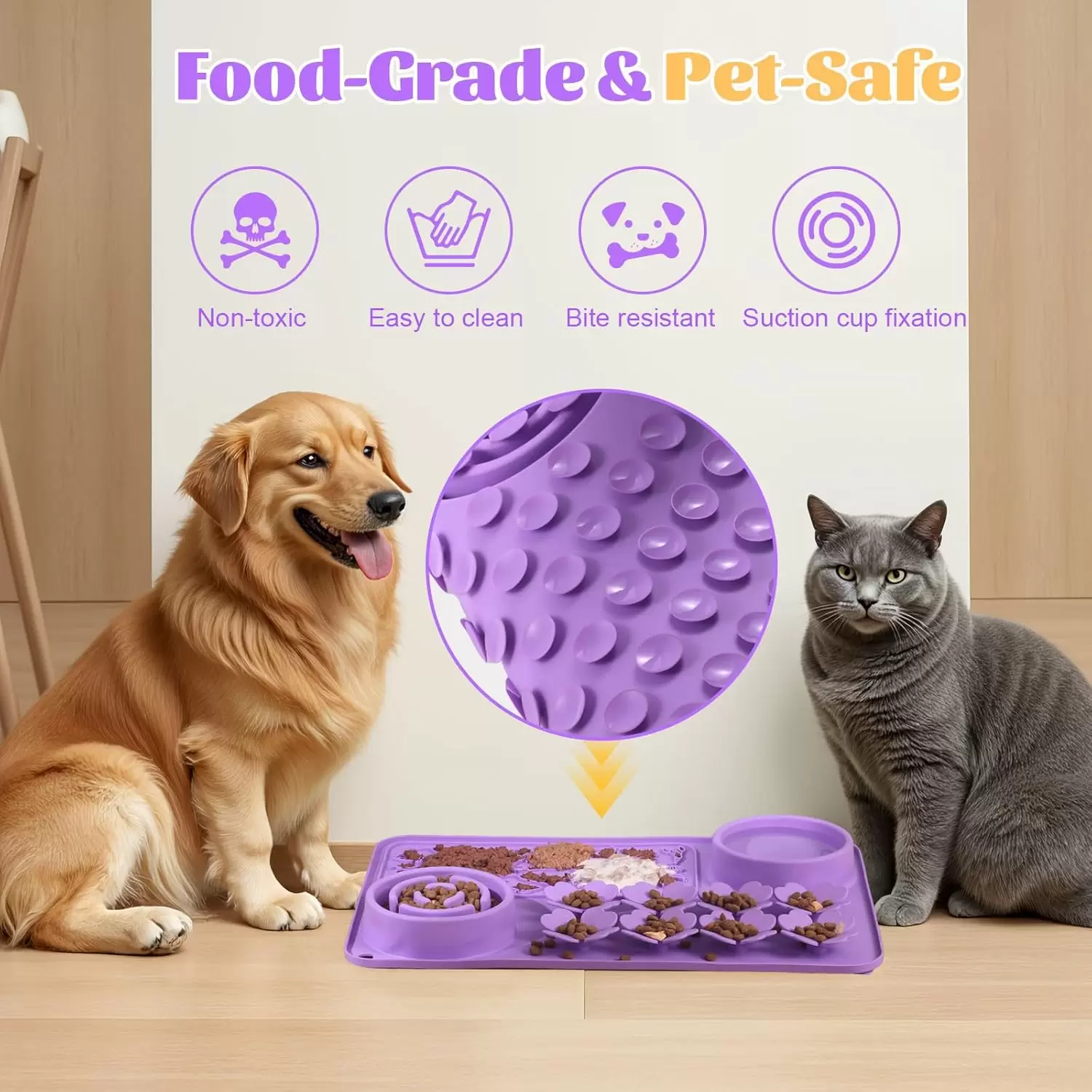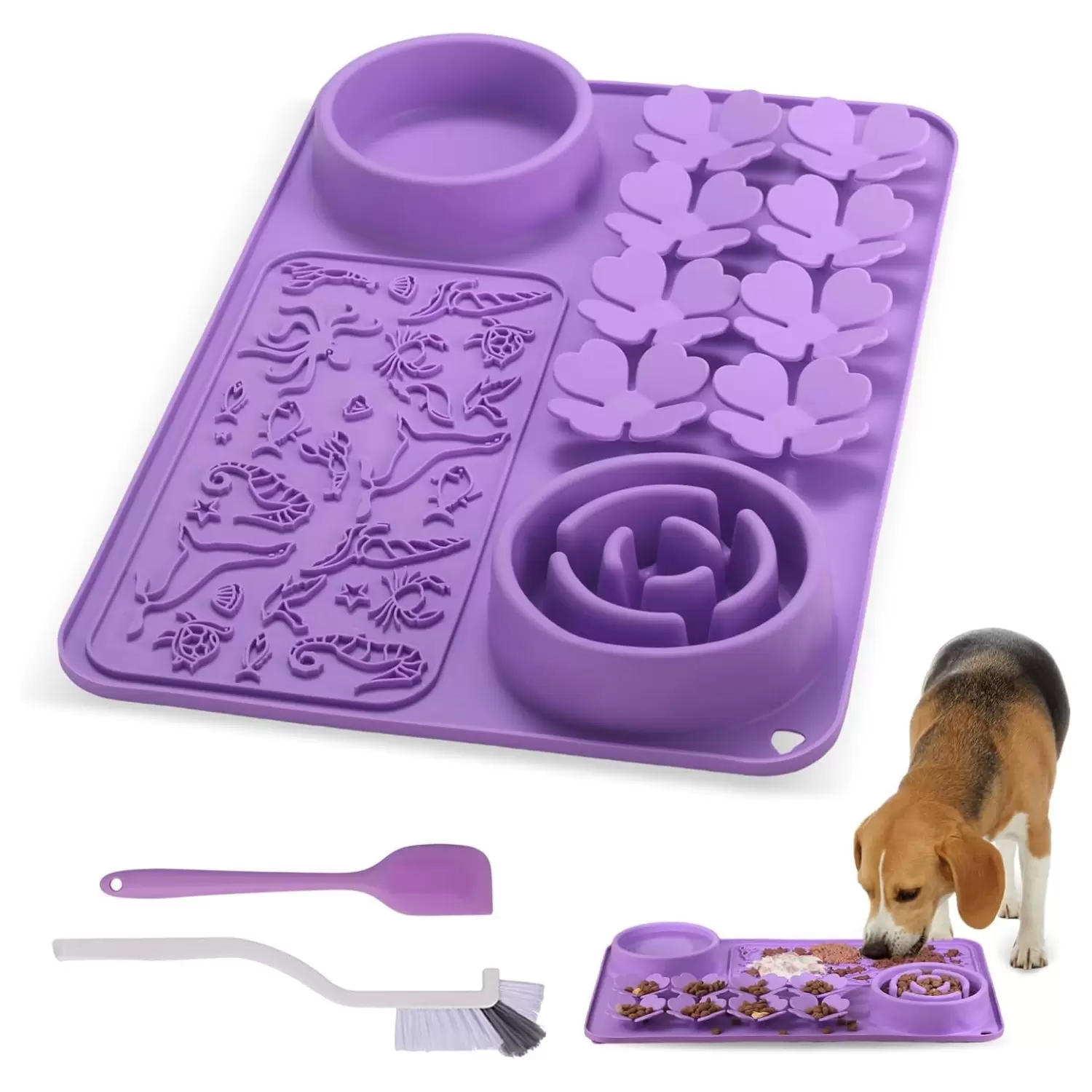 Estimulación mental y alimentación más lenta: convierte las comidas en un desafío divertido. El diseño de alimentador lento similar al laberinto y la alfombrilla para olfatear las áreas de los perros reducen el trago, ayudando a la digestión. La zona de la alfombra para lamer perros (ideal para lamer tapetes para perros de raza grande) recompensa la paciencia, aliviando la ansiedad durante las visitas al veterinario o el aseo.