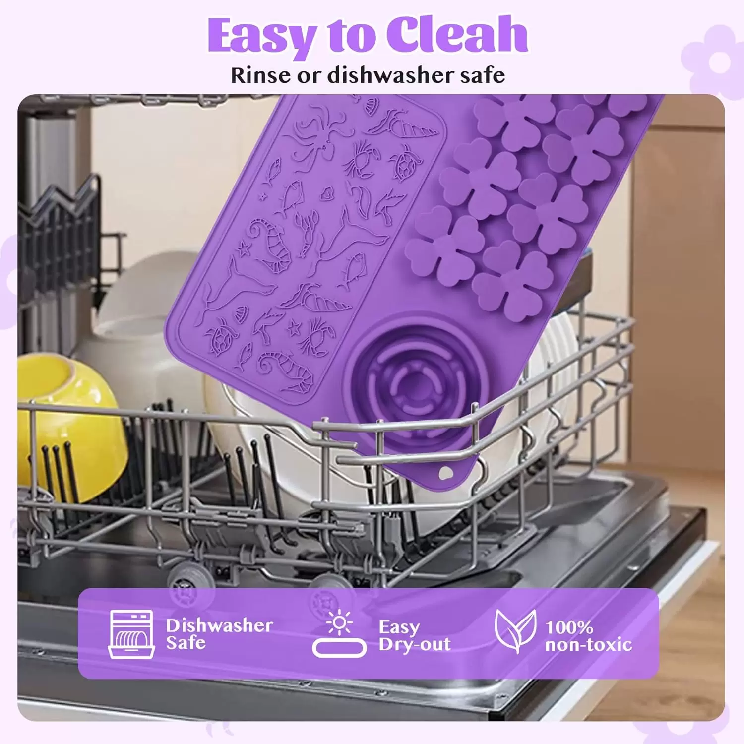 Limpieza y comodidad sin esfuerzo: apto para microondas, nevera y lavavajillas. Este tapete de comida para mascotas es fácil de usar para los padres de mascotas ocupados. Utilízalo como una bandeja de comida húmeda para gatos, tapete para lamer cachorros o rompecabezas de comida para perros, luego mételo en el lavavajillas para una limpieza rápida.