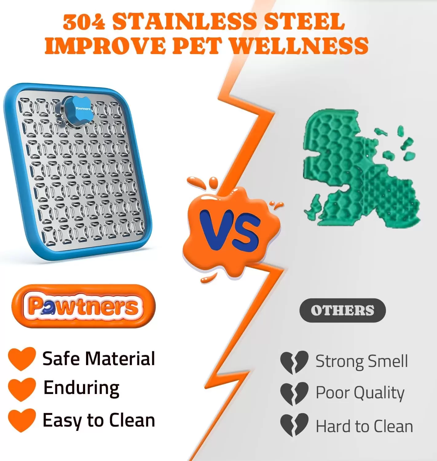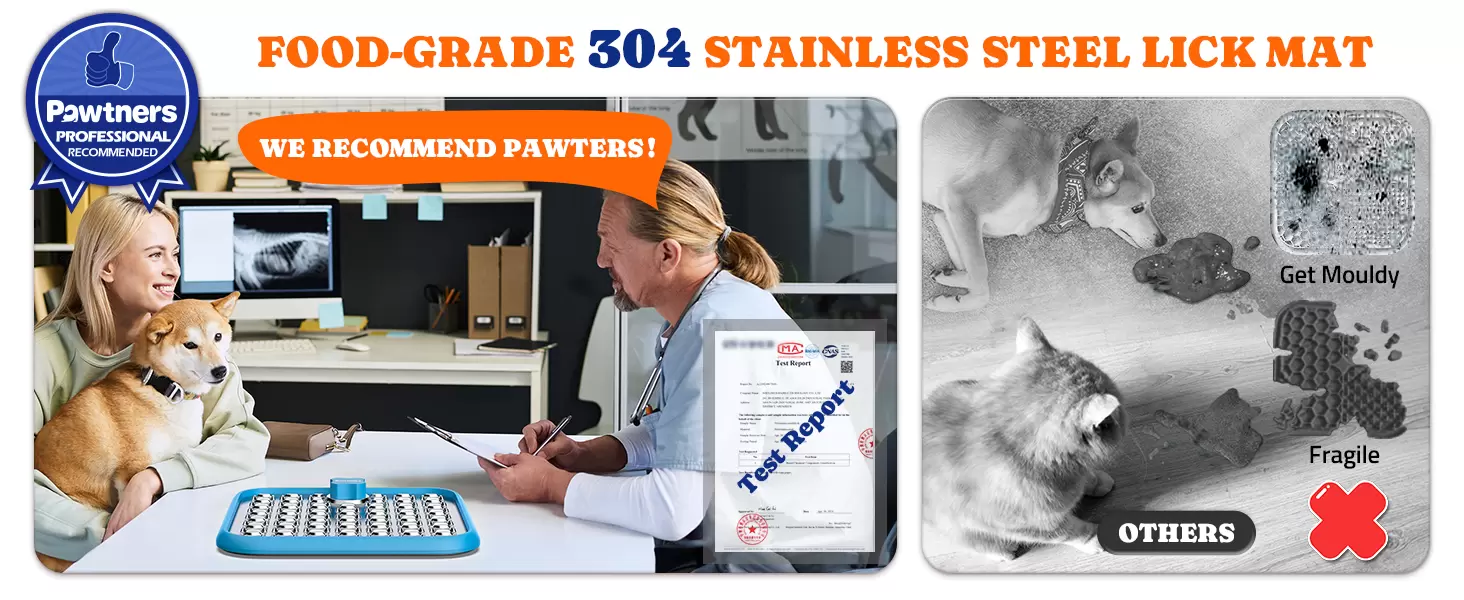 Material de acero inoxidable que mejora el bienestar de las mascotas: hecha de acero inoxidable 304, la alfombrilla Pawtners para lamer perros es duradera y segura para tu mascota. A diferencia de las alfombrillas de silicona tradicionales, nuestra alfombrilla de acero inoxidable es resistente al desgarro, asegurando un uso duradero. Su diseño apto para lavavajillas hace que el mantenimiento y la limpieza sean muy fáciles