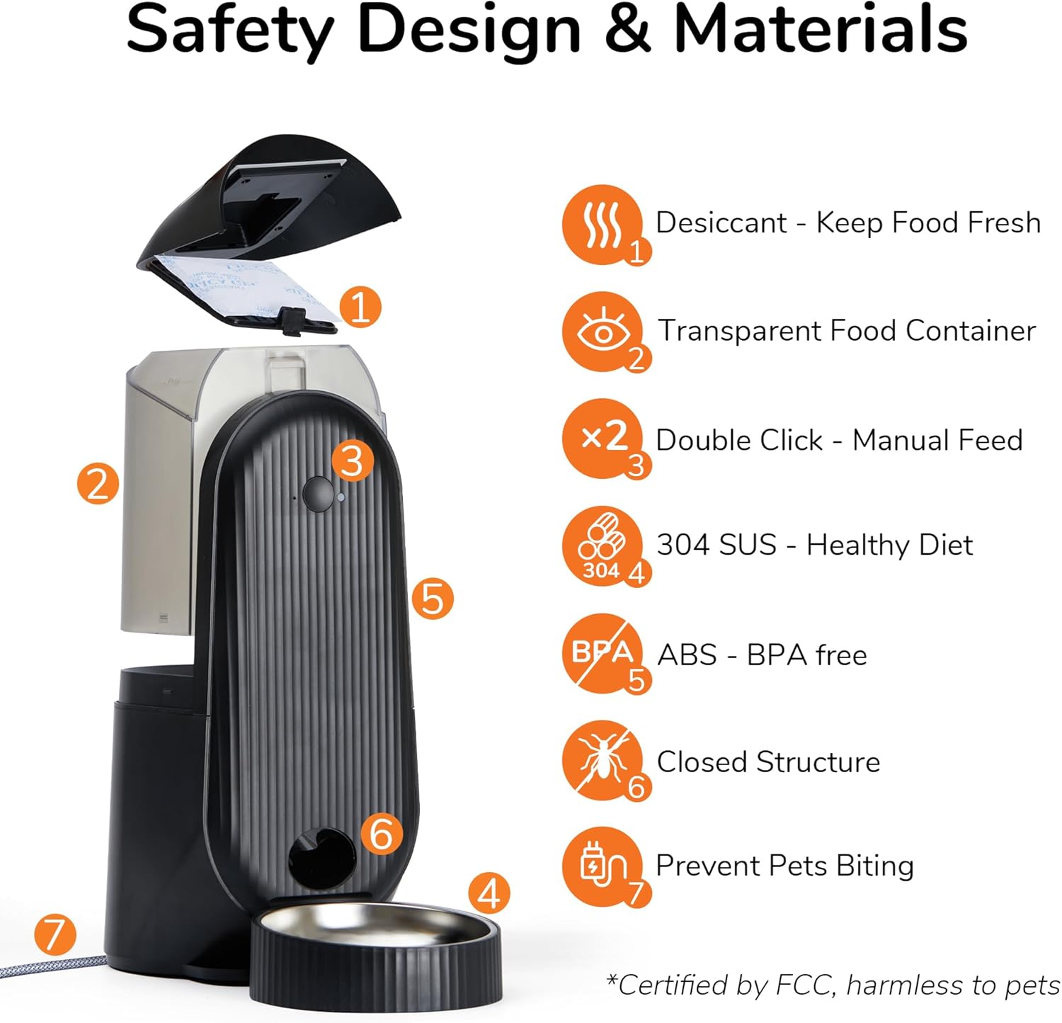 Material seguro: el comedero para mascotas está hecho de material ABS sin BPA, lo que garantiza la seguridad de comer mascotas. La estructura completamente sellada evita que entren garras traviesas. Los cuencos de acero inoxidable 304 de grado alimenticio son fáciles de limpiar, manteniendo su salud a largo plazo.