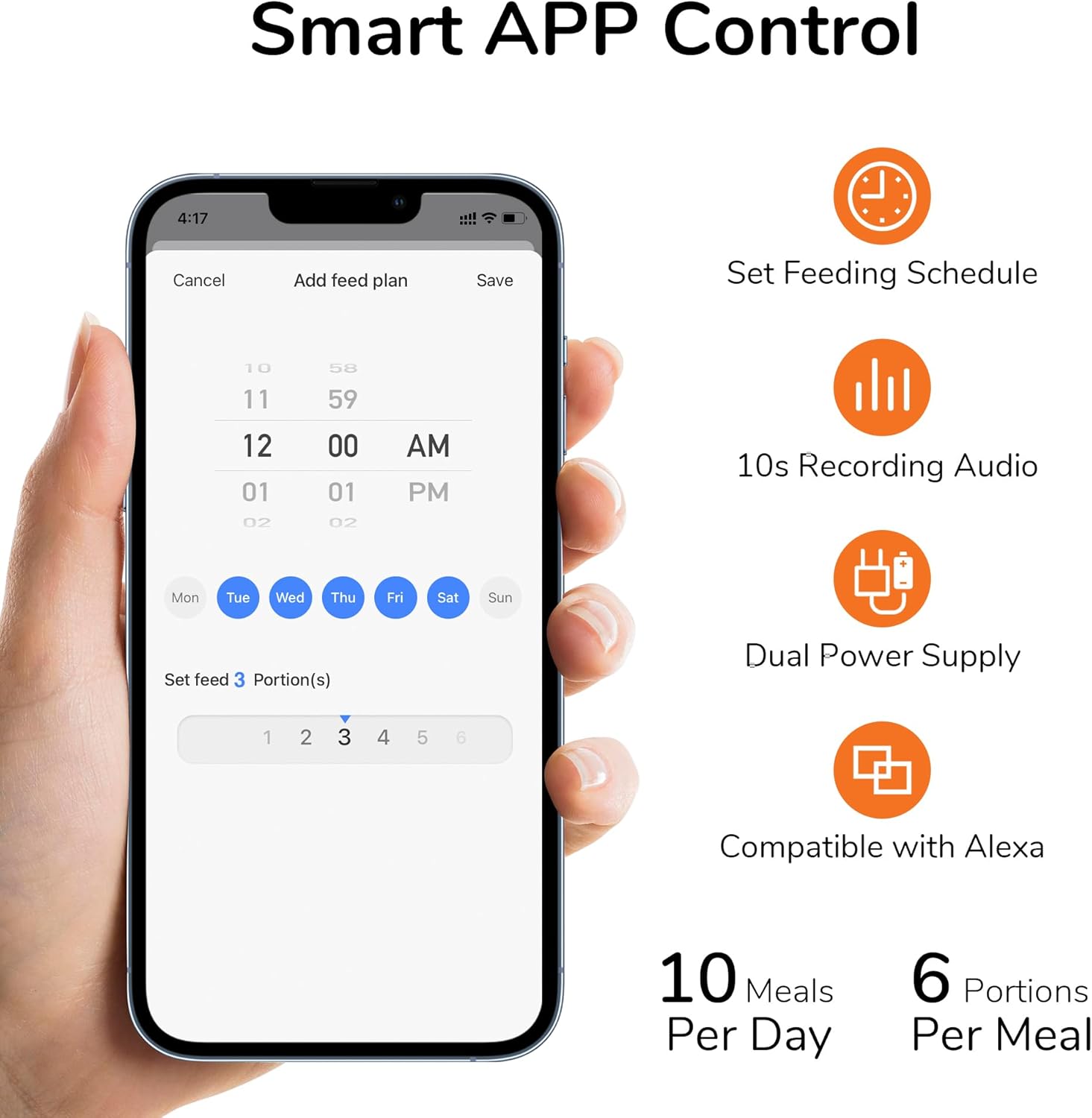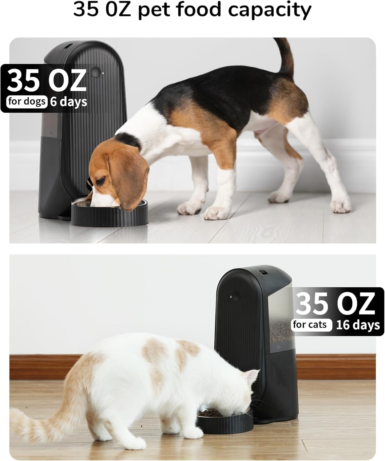 Compatible con Alexa: este alimentador cronometrado para gatos utiliza la aplicación Smartlife y es compatible con Alexa, por lo que es fácil unirse a tu sistema de hogar inteligente. Implemente comandos de voz para distribuir alimentos, liberar manos y facilitar la alimentación de las mascotas.