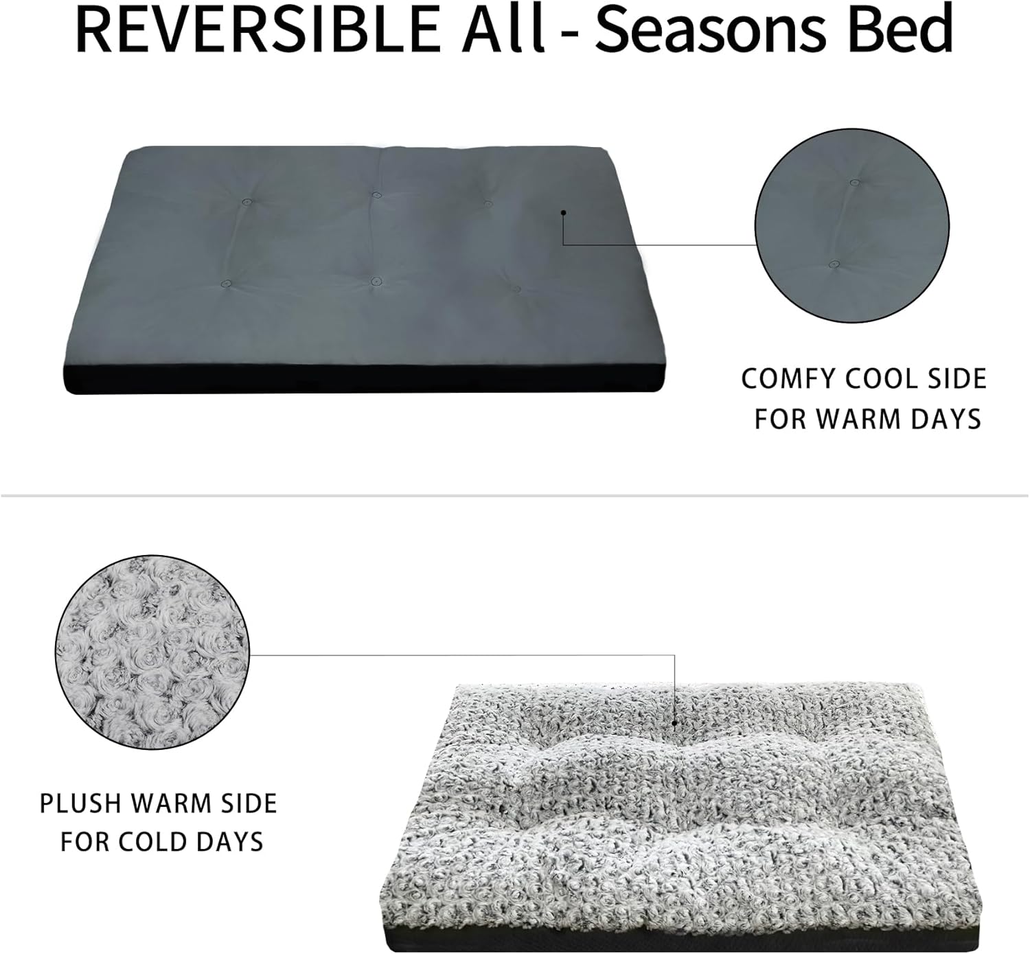 Diseño reversible de doble cara: un lado cuenta con terciopelo rosa ultrasuave para mantener a tu perro caliente y acogedor. El reverso es de tela Oxford duradera para transpirabilidad y comodidad refrescante. Con opciones tanto para terciopelo cálido como para Oxford refrescante, simplemente dale la vuelta a la cama para adaptarse a la temporada.