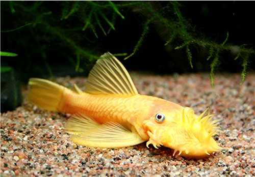 VARIEDAD AMARILLA NARANJA DE ESTE COME ALGAS AMAZONICO, EN ACUARIO LLEGARA A LOS 8 CM.