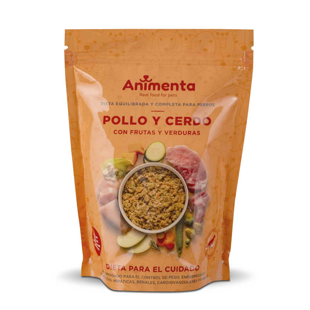 La dieta de pollo y cerdo es una dieta baja en energía, por lo tanto, es apta para el control de peso en perros esterilizados. Este menú es moderado en proteínas, por tanto, puede ser útil para perros con enfermedades metabólicas, hepáticas, renales, cardiovasculares y diabetes. En el caso de presentar problemas gastrointestinales también es una de las dietas más adecuadas a tomar.