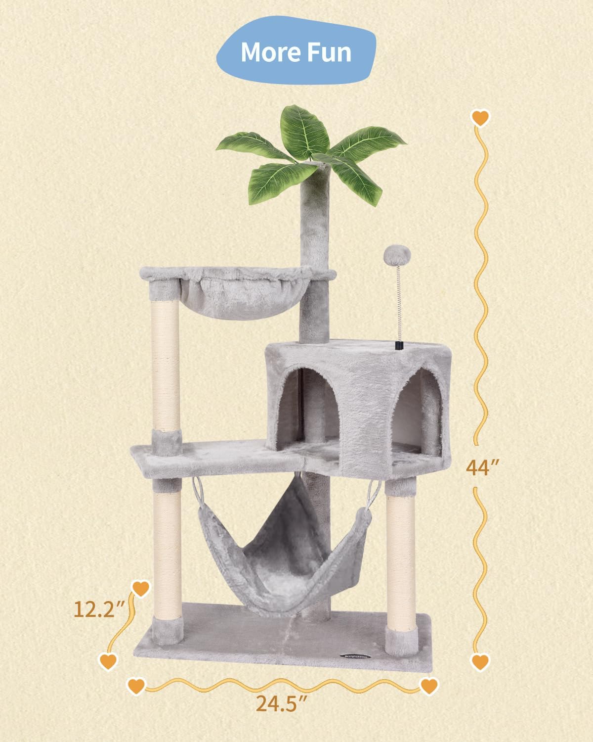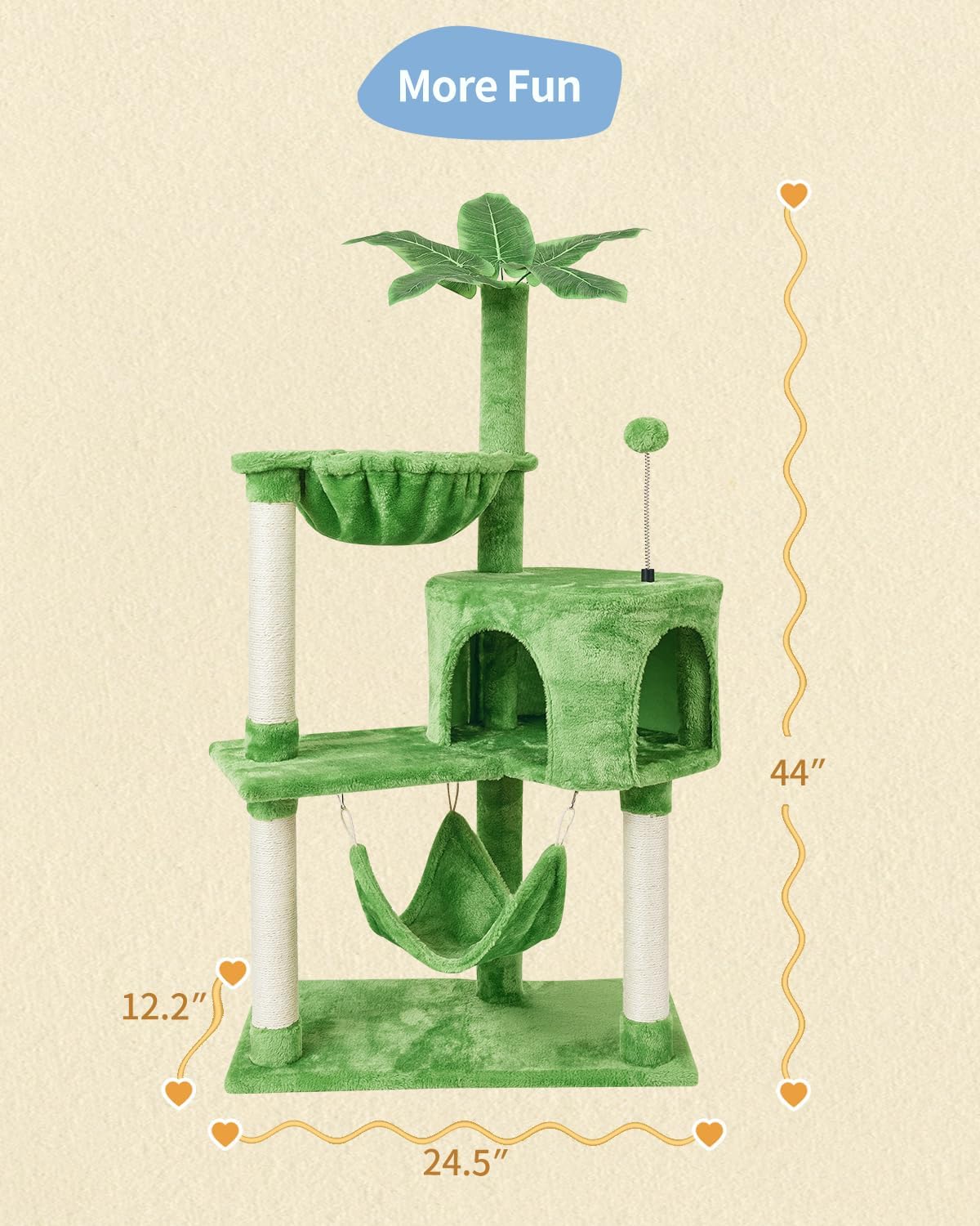 Estilo de árbol: el estilo del árbol es de buen aspecto, este árbol para gatos proporciona una superficie cómoda para que los gatos jueguen y se posen. Tus encantadores gatitos juegan con bolas interactivas cuando se aburren