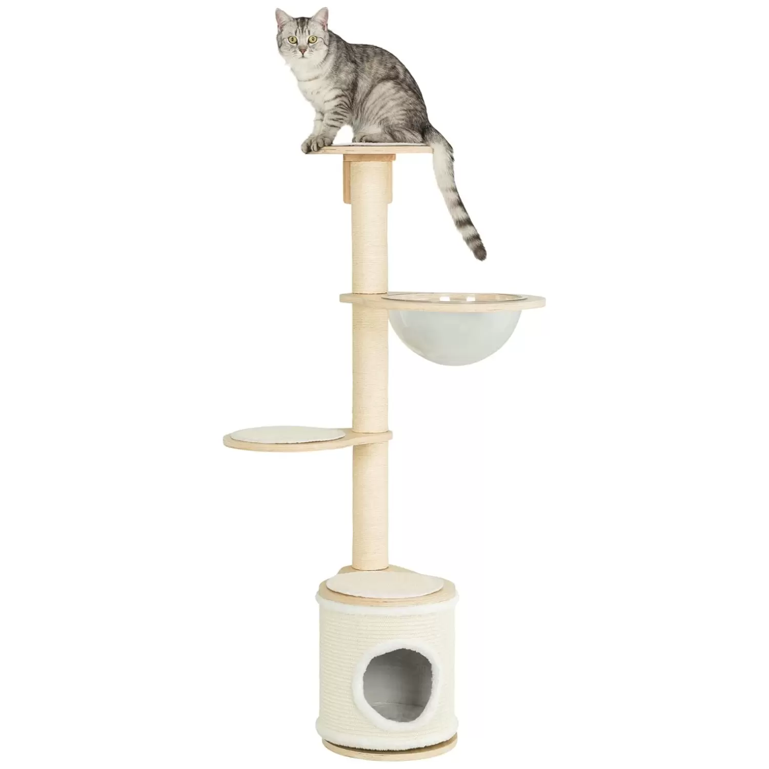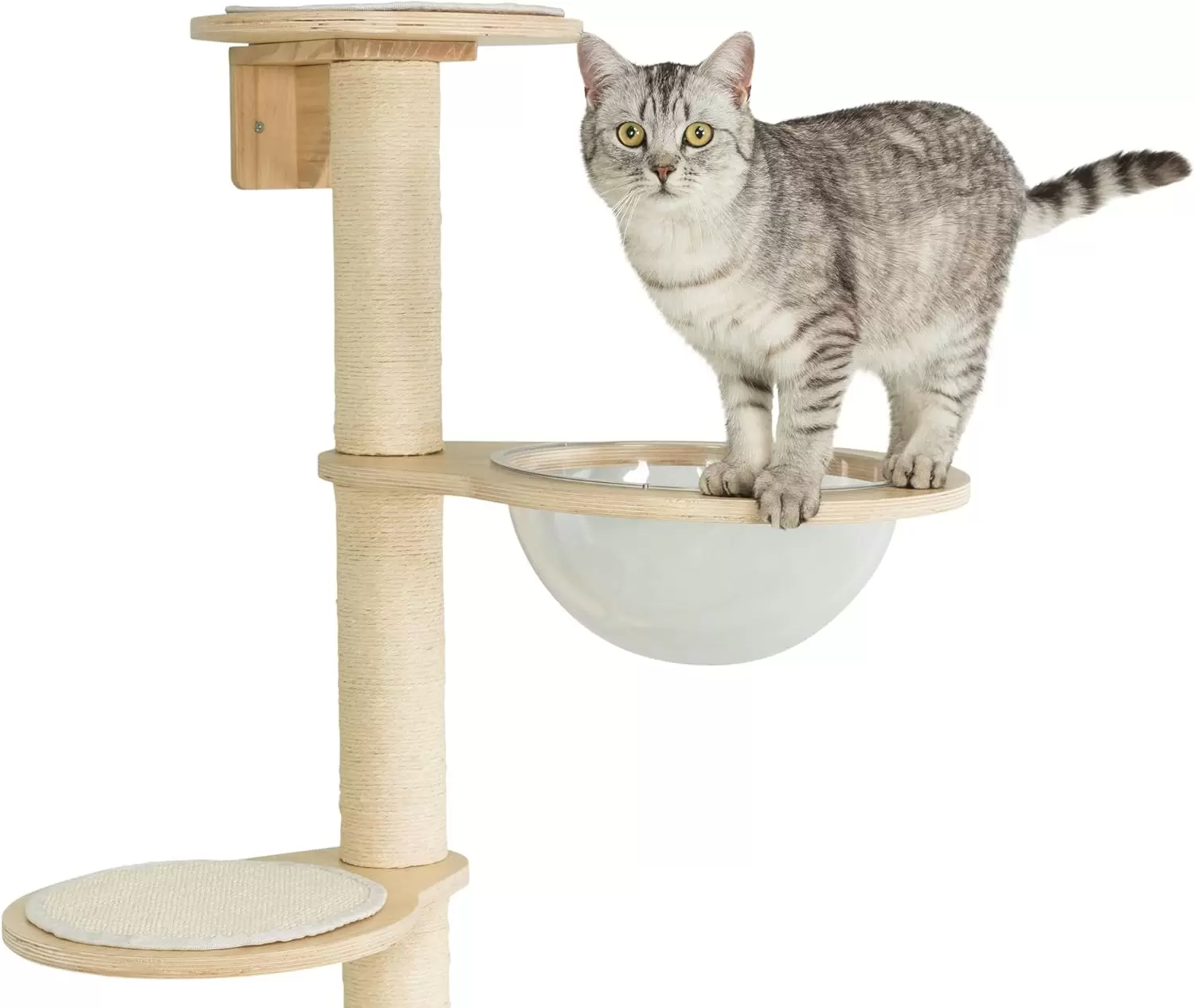 Árbol Rascador Mural (138x65x55 cm): Cápsula Burbuja y Diseño Vertical de Lujo