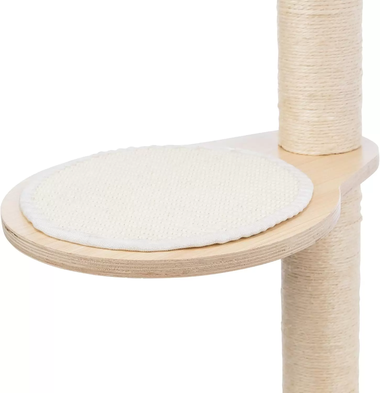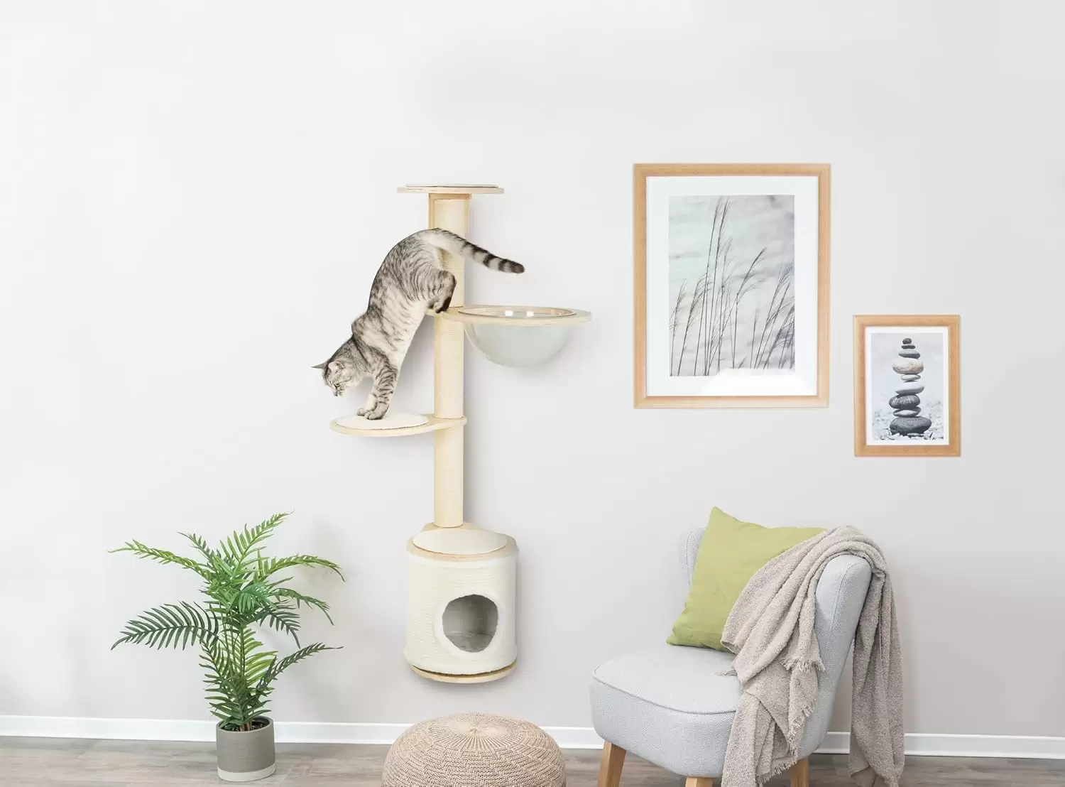 Esta torre para gatos es una excelente alternativa a los típicos rascadores cubiertos de alfombra, ya que su hermoso acabado de madera barnizada complementa cualquier estilo de hogar.