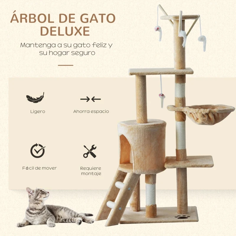 Árbol Rascador para Gatos con Hamaca | Torre de Juego y Descanso de 134x48x34 Cm