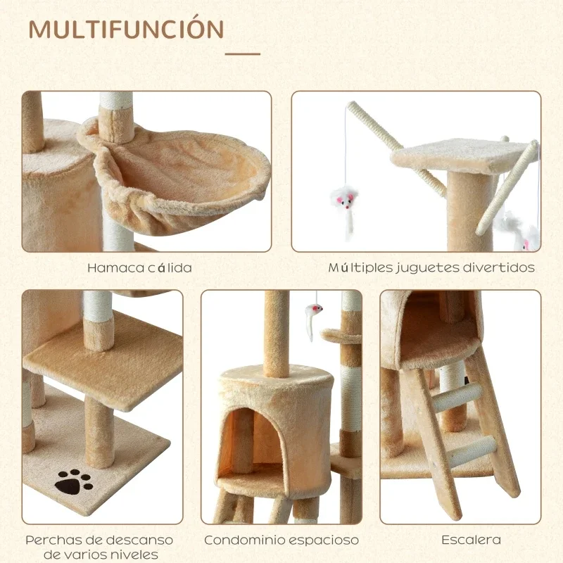 – Estable y Confortable: Estructura hecha de tablero madera aglomerado. Los postes son muy gruesos, por lo que la estructura es estable y resistente. Está cubierto de terciopelo 400g/㎡ , con un tacto cómodo y suave para tu gato