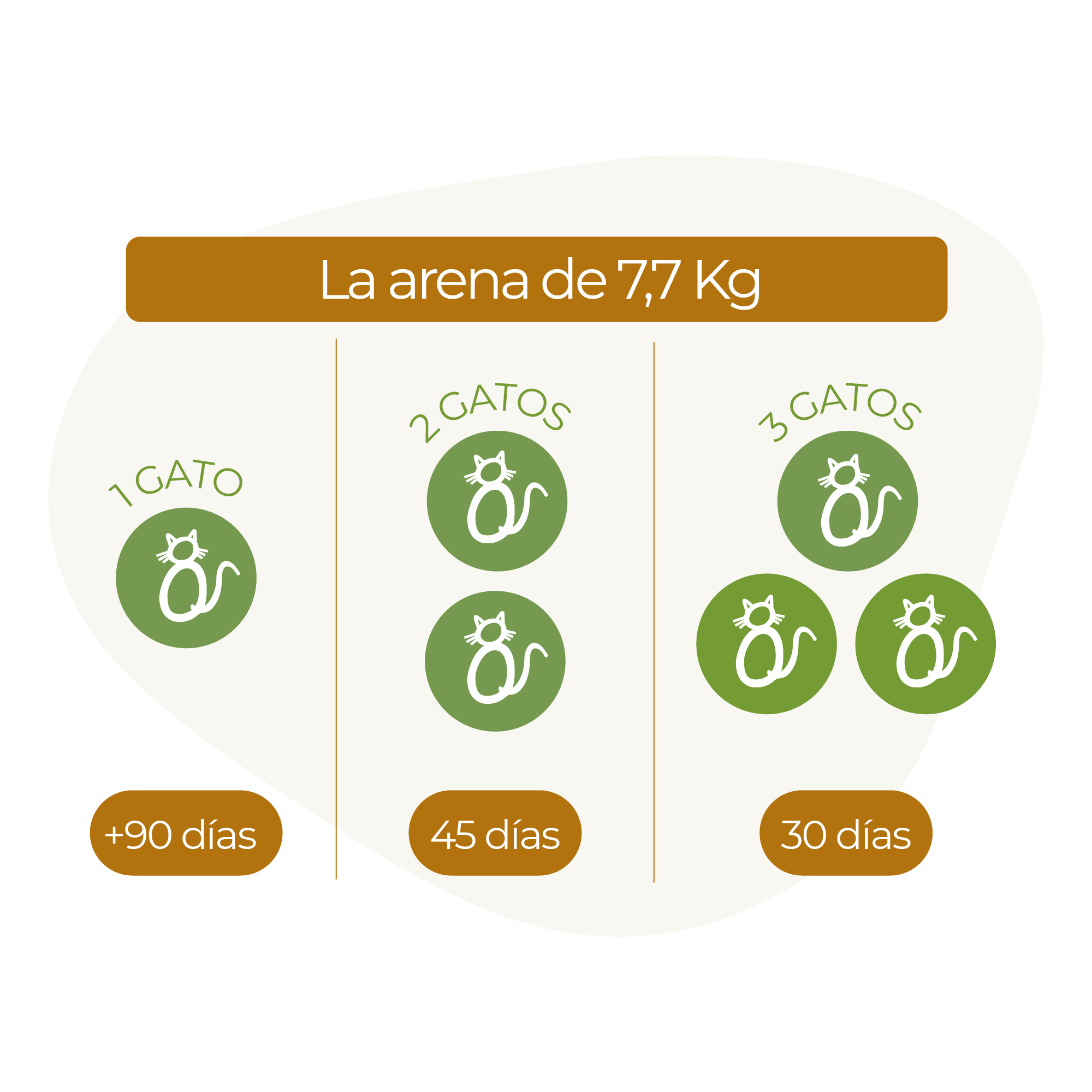 Elaborada a base de maíz 100% natural y biodegradable, libre de polvo y con gran capacidad de aglomeración garantizando control de olor y la mejor disposición en el manejo de los residuos ya que se pueden tirar al sanitario.