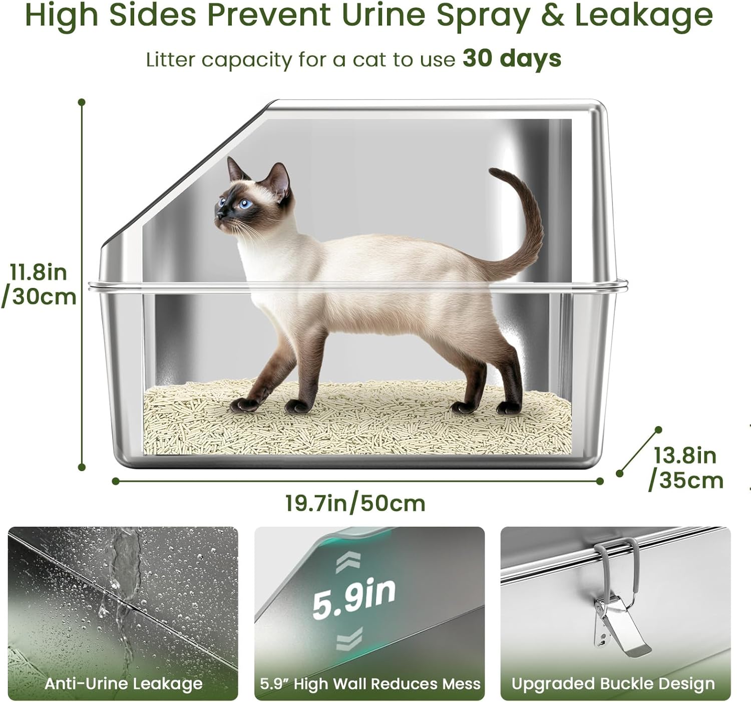Lados altos de metal y a prueba de fugas: esta caja de arena cubierta extra grande para gatos cuenta con lados de 11.8 pulgadas de alto, la bandeja de arena profunda para gatos contiene arena eficazmente y evita derrames y fugas de orina. Ideal para mascotas de gatos de orina alta. Garantiza una experiencia a prueba de fugas y sin problemas. mantener su hogar limpio y ordenado.
