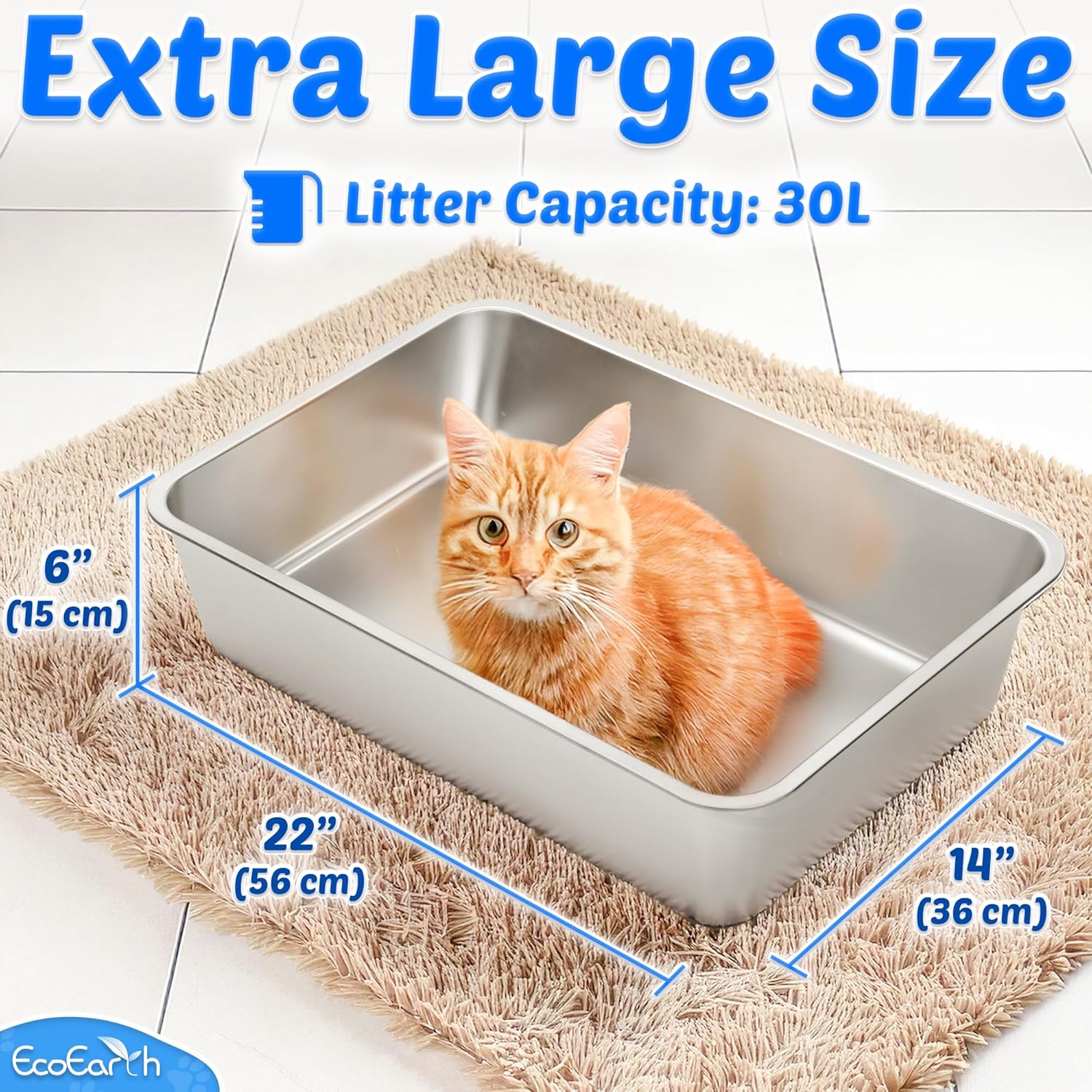 Espaciosa y lujosa: mide 22 x 14 x 12 pulgadas, esta caja de arena extragrande es espaciosa incluso para los gatos más grandes; las paredes laterales miden 6 pulgadas de alto para evitar que la orina o la arena se derramen, manteniendo el espacio limpio y ordenado