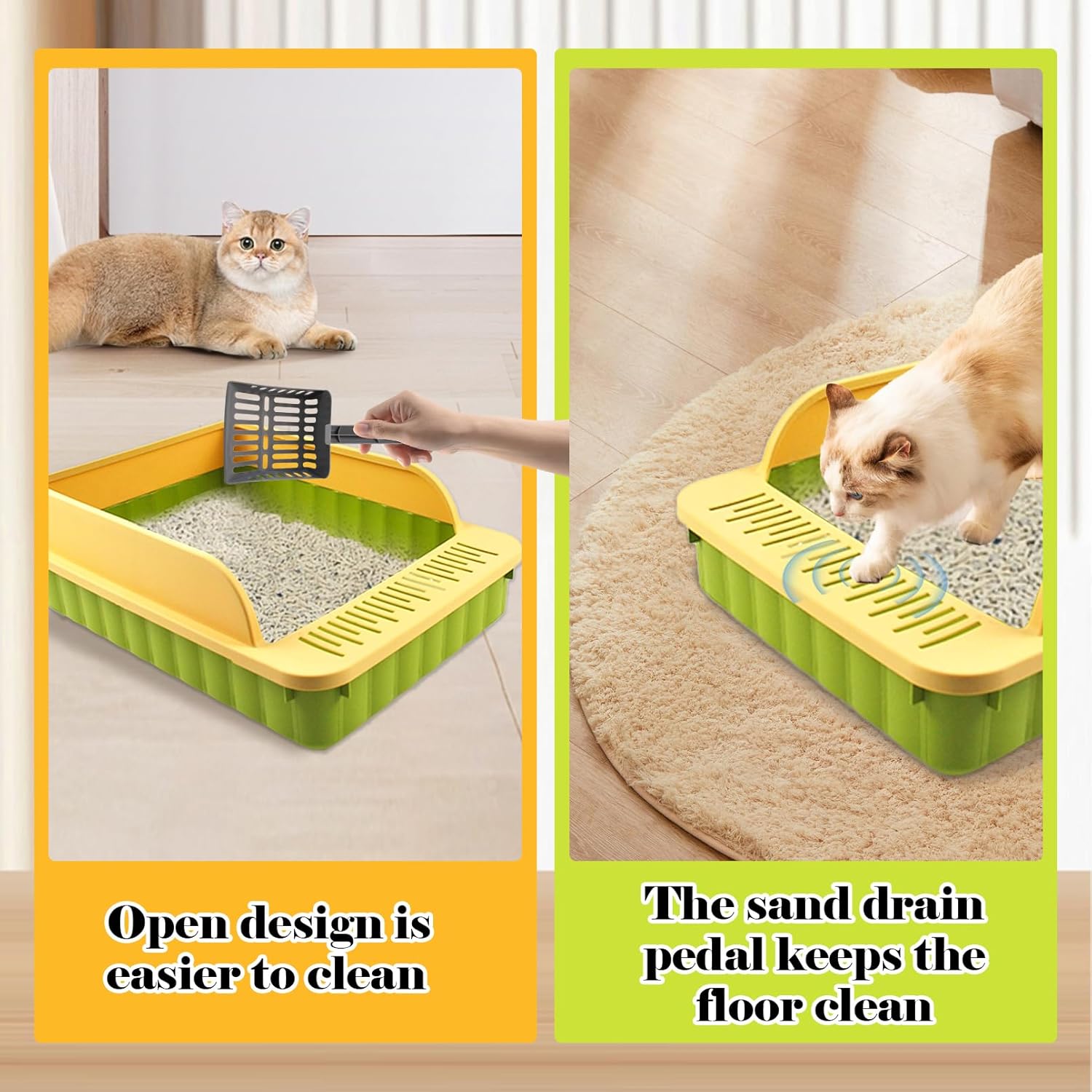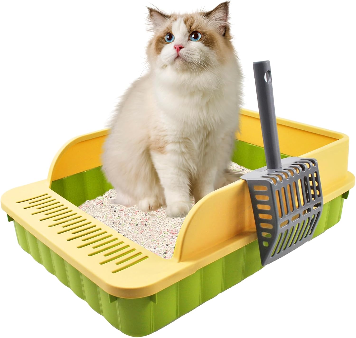 Fácil acceso: diseño de entrada baja, conveniente para que su mascota ingrese. Nuestra bandeja de arena para gatos viene con una cuchara para arena para gatos, lo que le ahorra el tiempo de comprar una cuchara para arena para gatos por separado