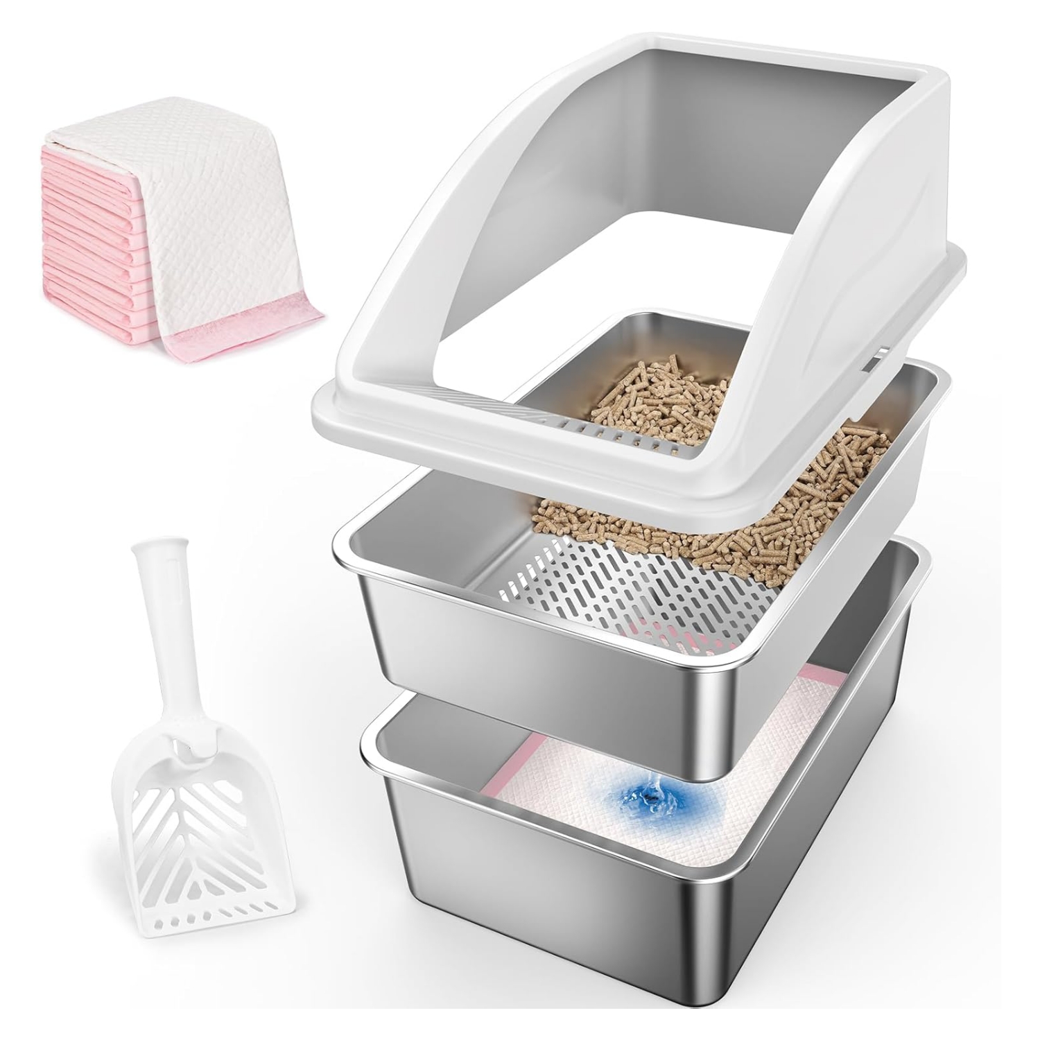 Diseño higiénico de acero inoxidable: Su construcción sin costuras ayuda a reducir la retención de olores. Incluye 10 paquetes de repuestos de 19,4 x 60,9 cm para almohadillas absorbentes para gatos.