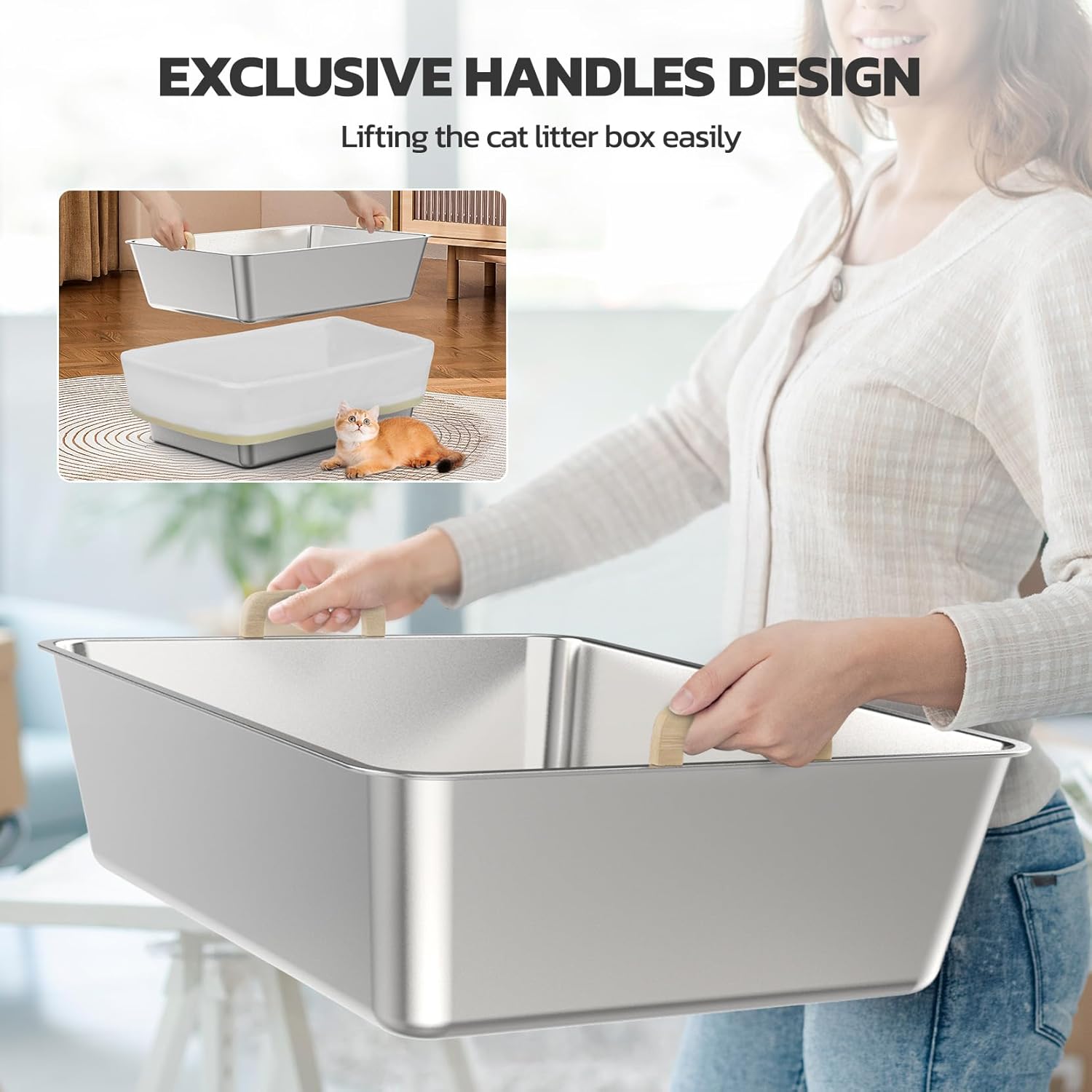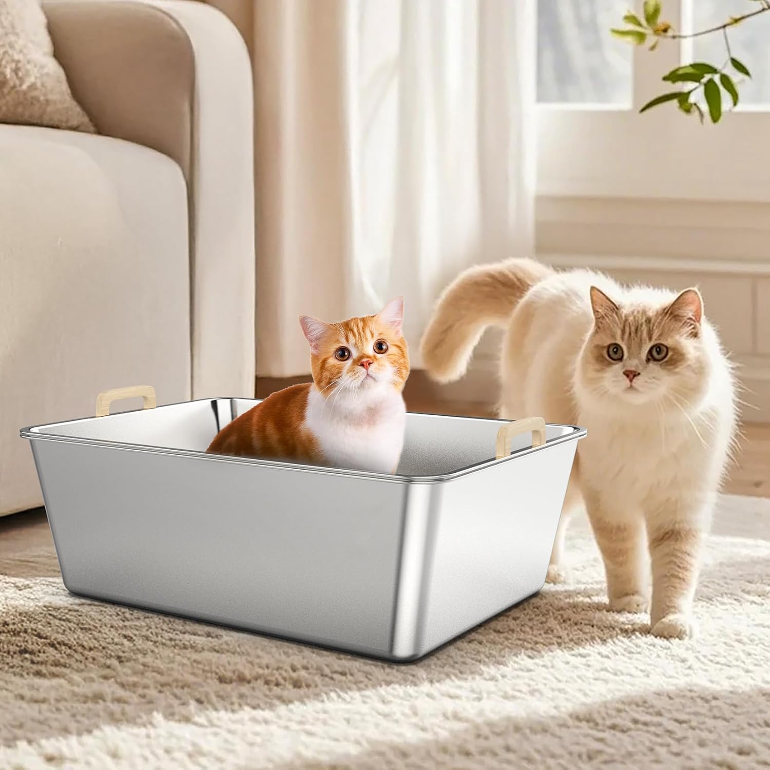 Construcción de acero inoxidable de primera calidad: La caja de arena metálica para gatos está fabricada con acero inoxidable de primera calidad que ofrece un alto rendimiento, es robusta, resistente a la corrosión y está diseñada para resistir años de uso diario. La caja de arena de acero inoxidable es resistente a arañazos y abolladuras durante el uso. El diseño de entrada superior es ideal para gatos que pueden sentir ansiedad al entrar en una caja de arena cerrada, así como para quienes prefieren el aire libre.