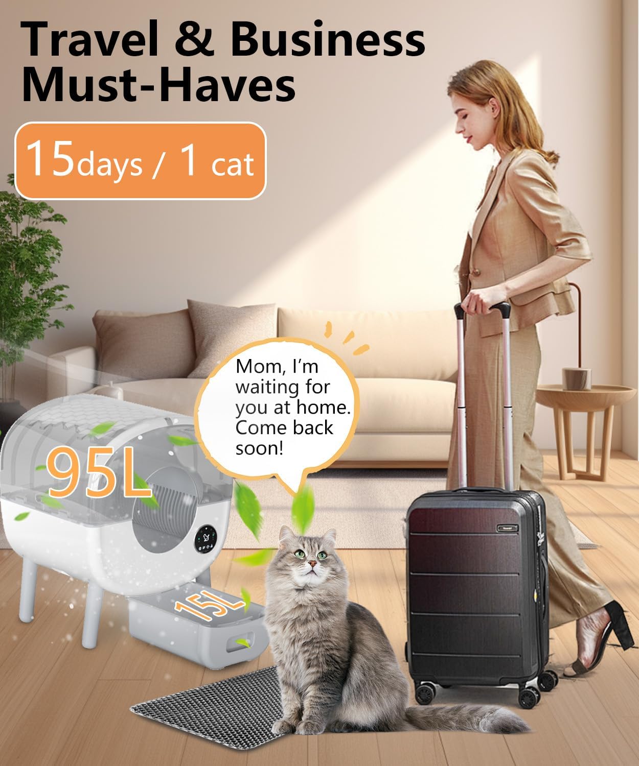 Diseñada para hogares con varios gatos: esta gran caja de arena autolimpiante de 110L es perfecta para varios gatos, proporcionando un amplio espacio y reduciendo la necesidad de limpiezas frecuentes.