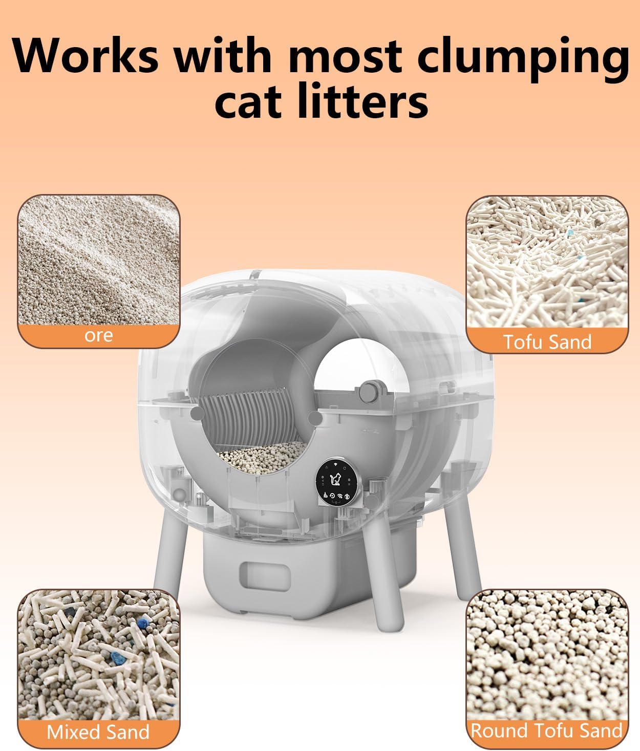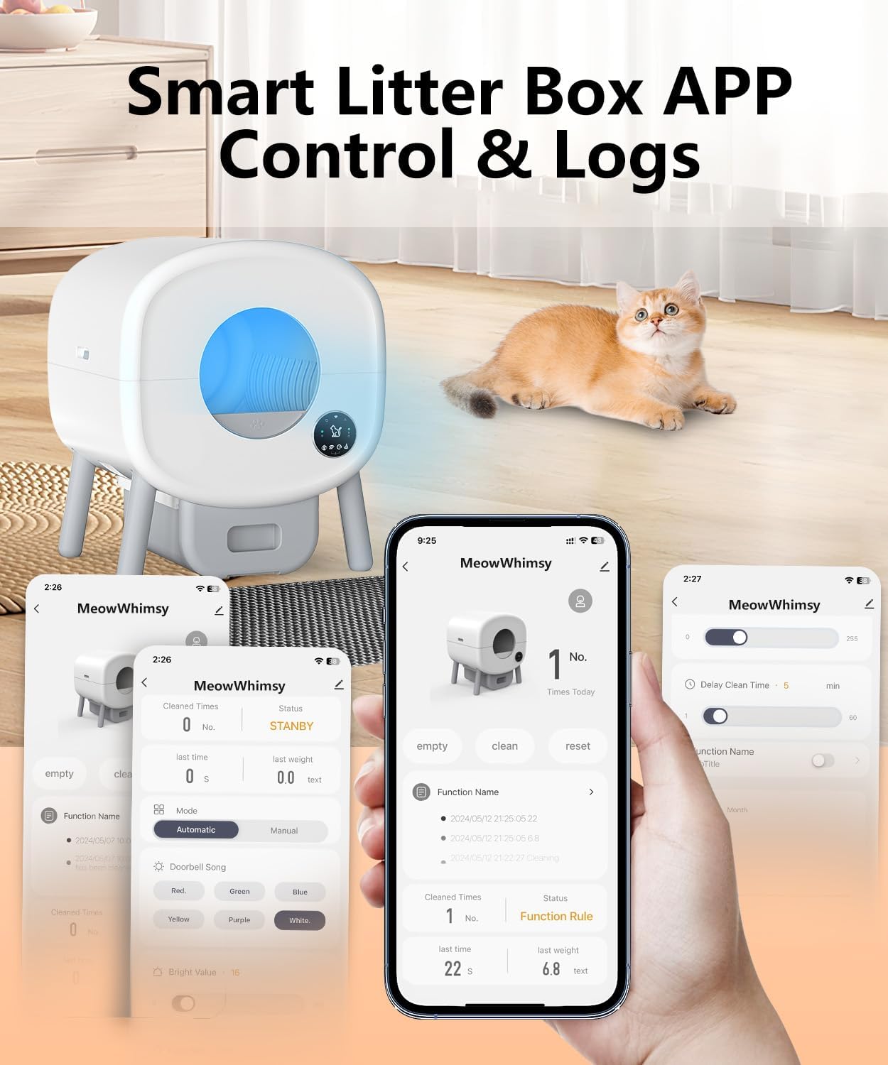 Características controladas por la aplicación: Monitoree y controle la limpieza automática de su caja de arena automática desde cualquier lugar utilizando la aplicación móvil dedicada. Recibe notificaciones, ajusta la configuración y rastrea el uso de tu gato en tiempo real.