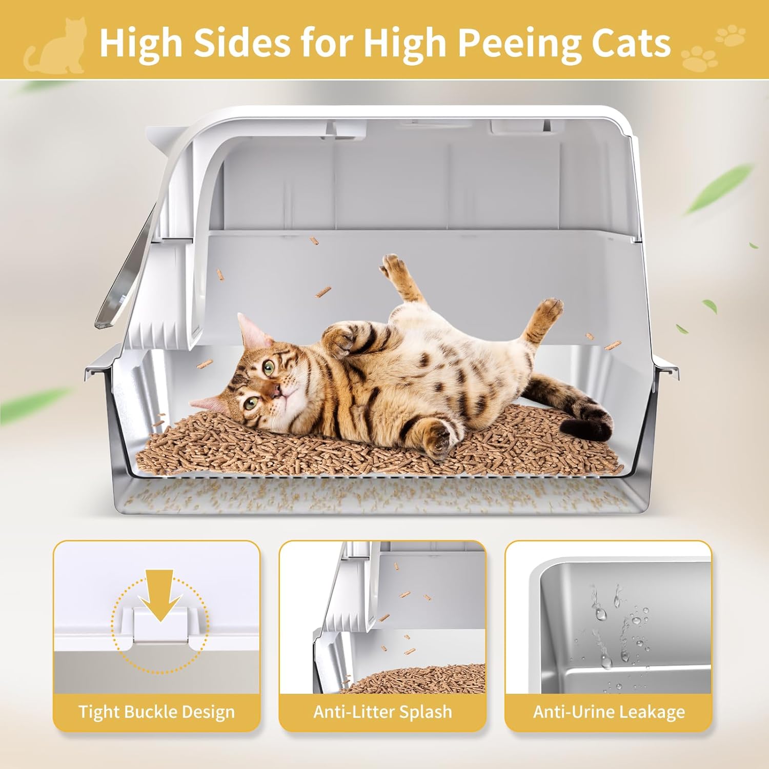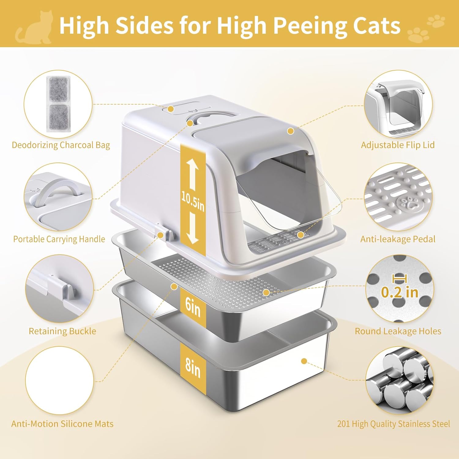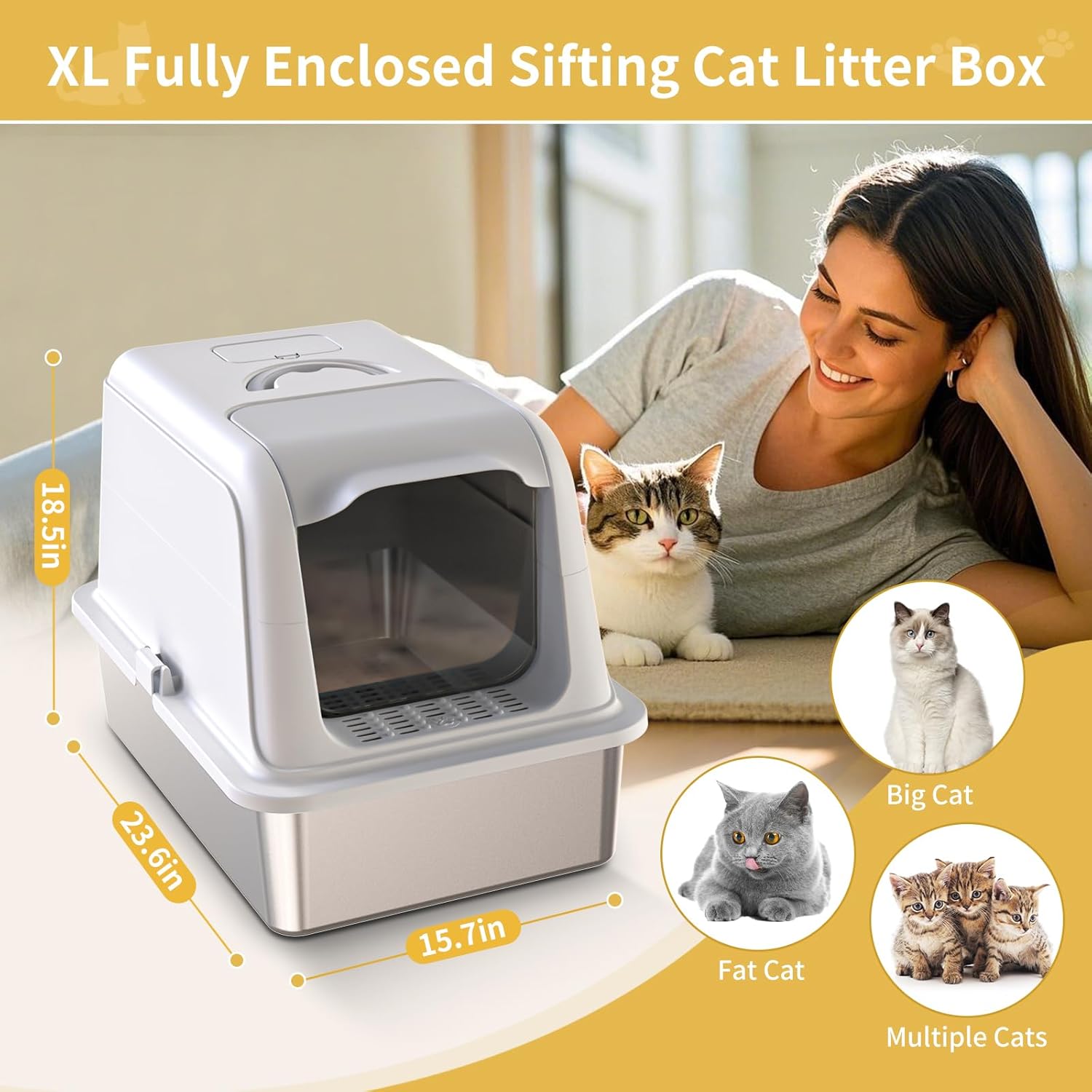 Arenero Cerrado con Bandeja Tamiz de Acero Inoxidable para Gatos 60x40x47 Cm + Pala,Sabanilla,Bolsas