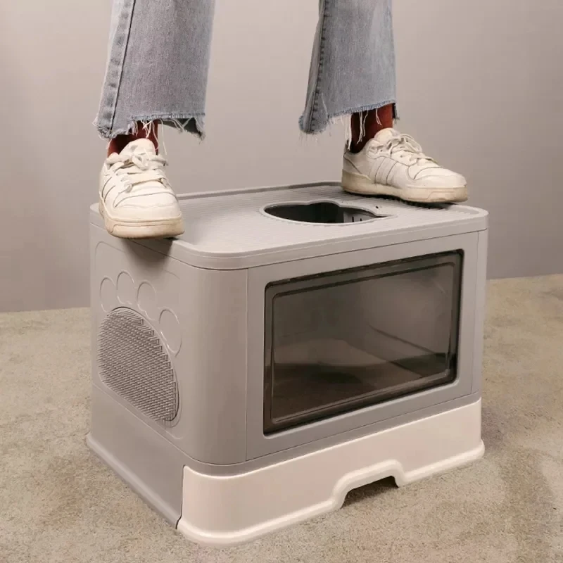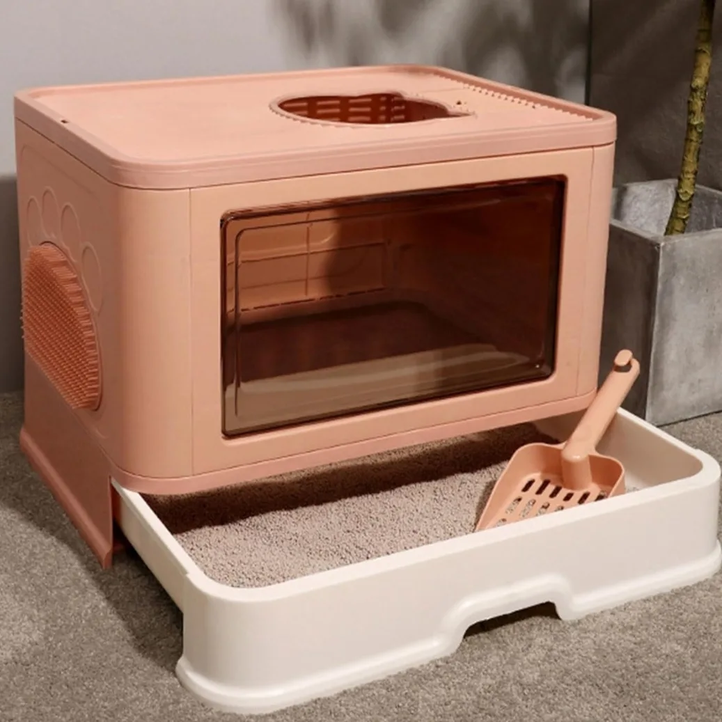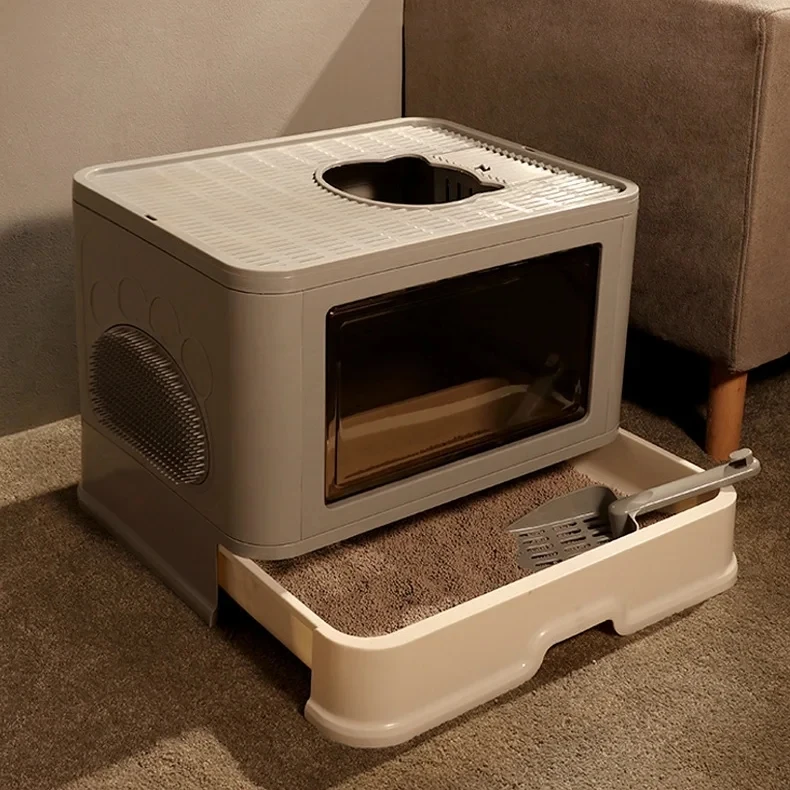 Esta bandeja de arena para gatos viene con una bandeja de arena extraíble para facilitar la limpieza. La superficie altamente pulida es resistente a los olores y las manchas, lo que brinda comodidad durante todo el día a nuestros gatos y garantiza una fácil limpieza para sus padres.