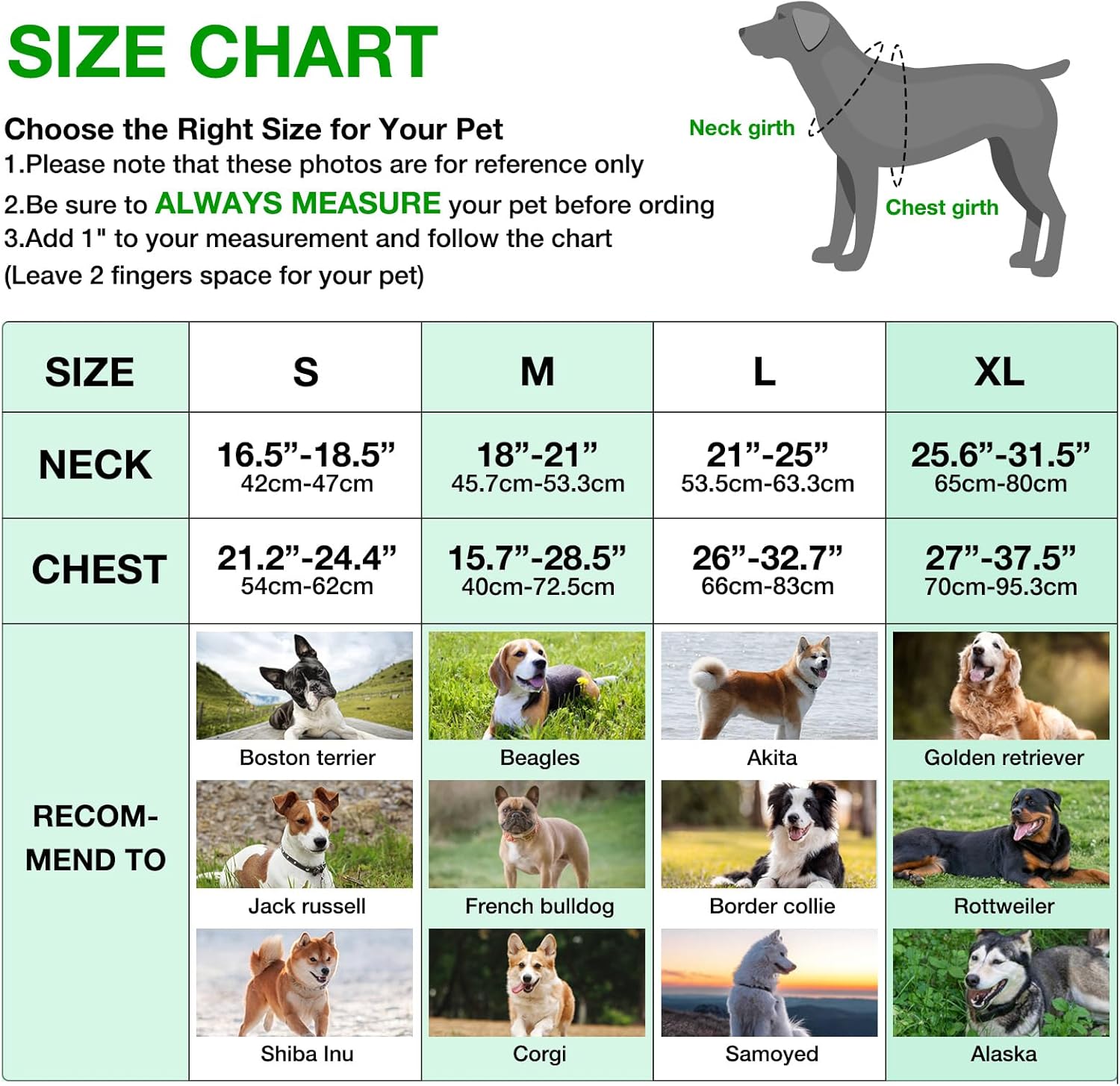 | Tallas | L Cuello ( 53-63 Cm ) Pecho ( 66-83 Cm ), M Cuello ( 45-53 Cm ) Pecho ( 40-72 Cm ), S Cuello ( 42-47 Cm ) Pecho ( 54-62 Cm ), XL Cuello ( 65-80 Cm ) Pecho ( 70-95 Cm ) |
