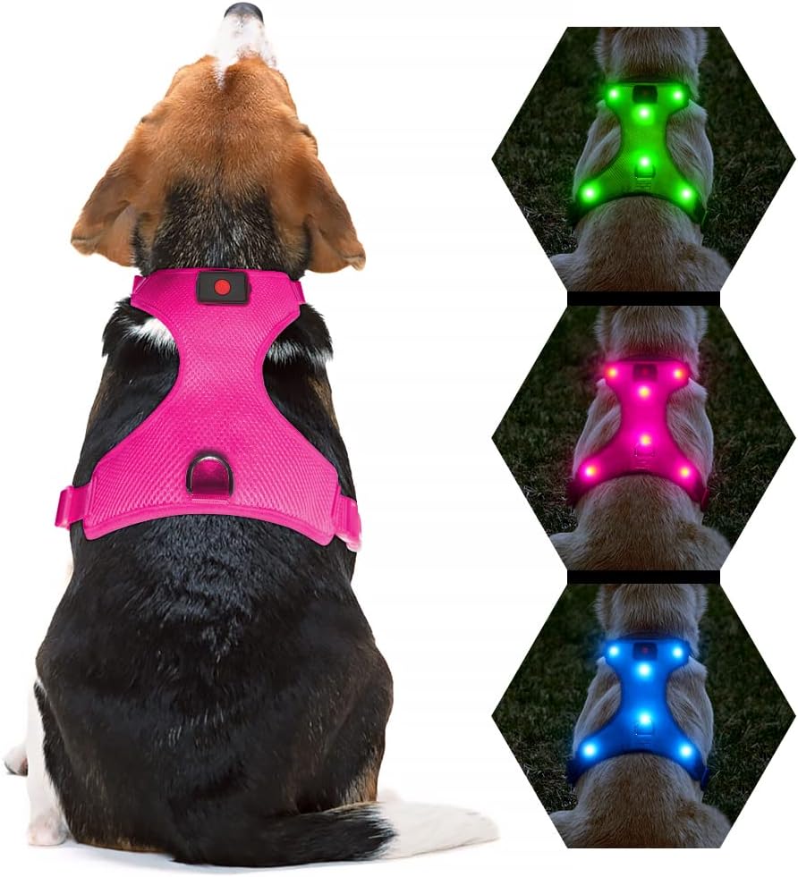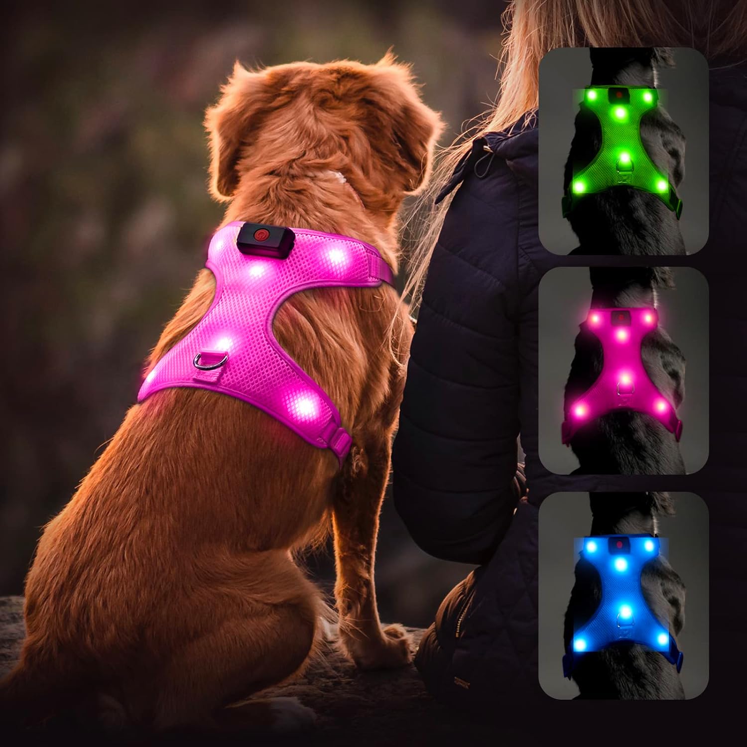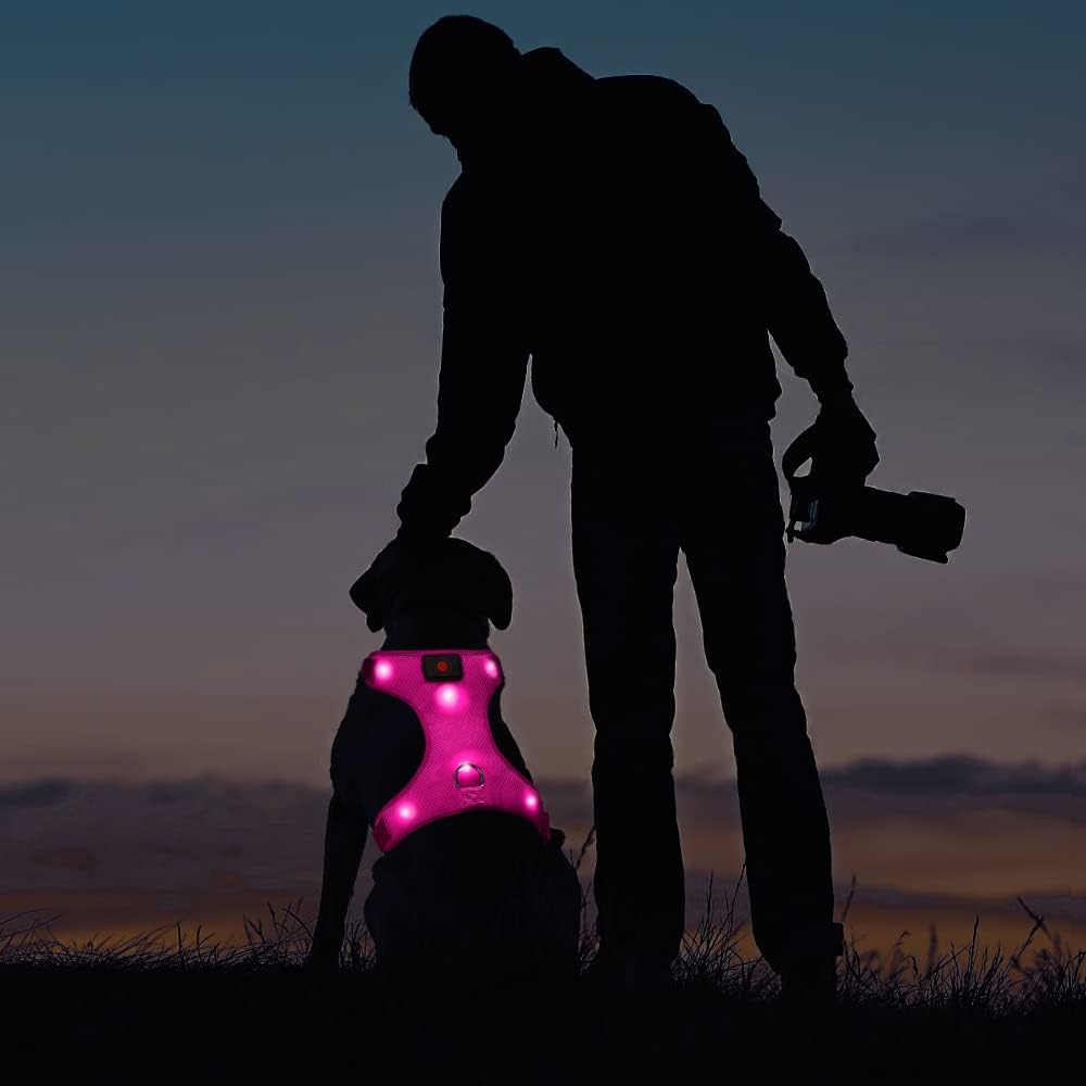 Súper brillante de 6 luces: el arnés para perro Flashseen ofrece un brillo extra para mantener a tus perros visibles y te da tranquilidad. Perfecto para caminar por la noche, correr, entrenar y actividades al aire libre.