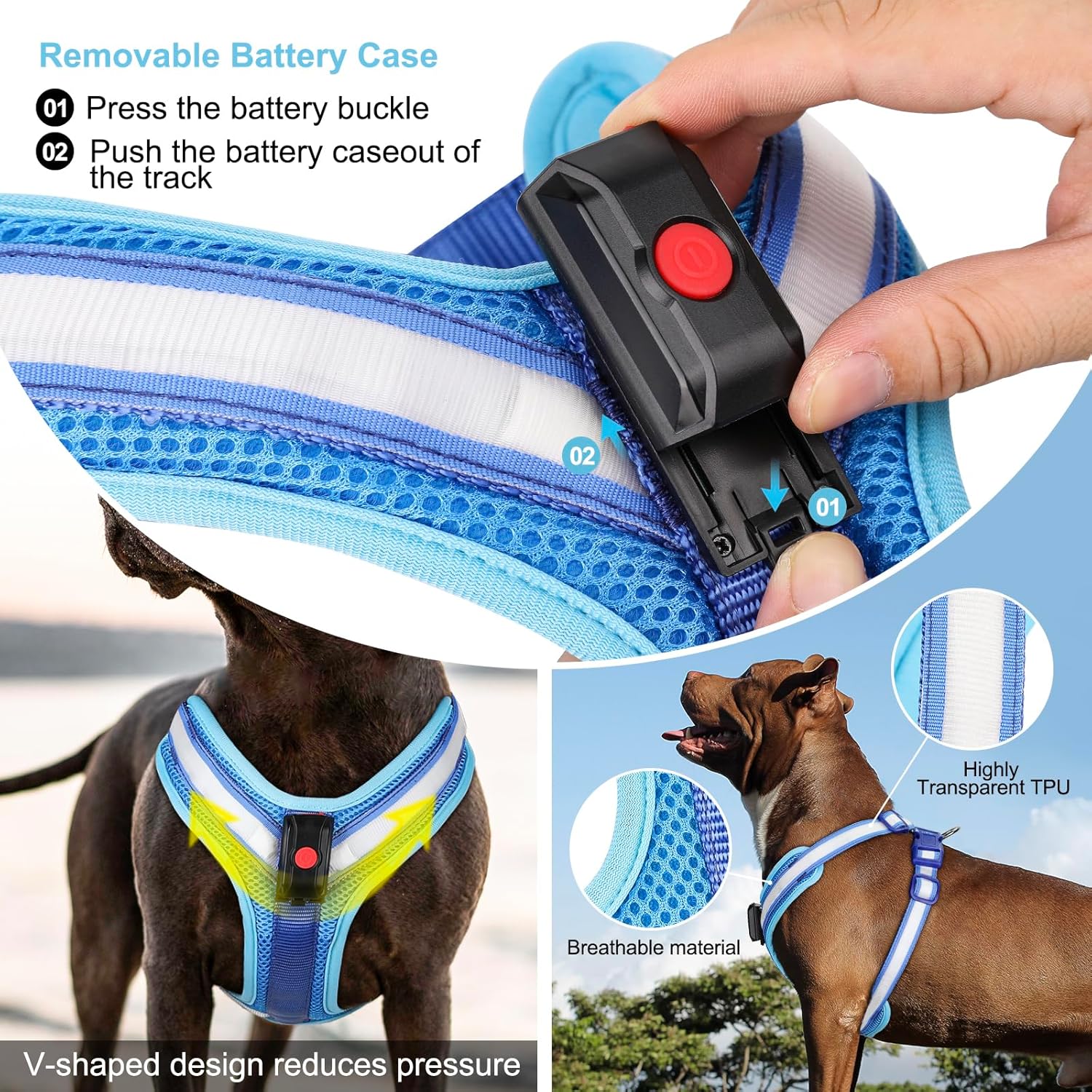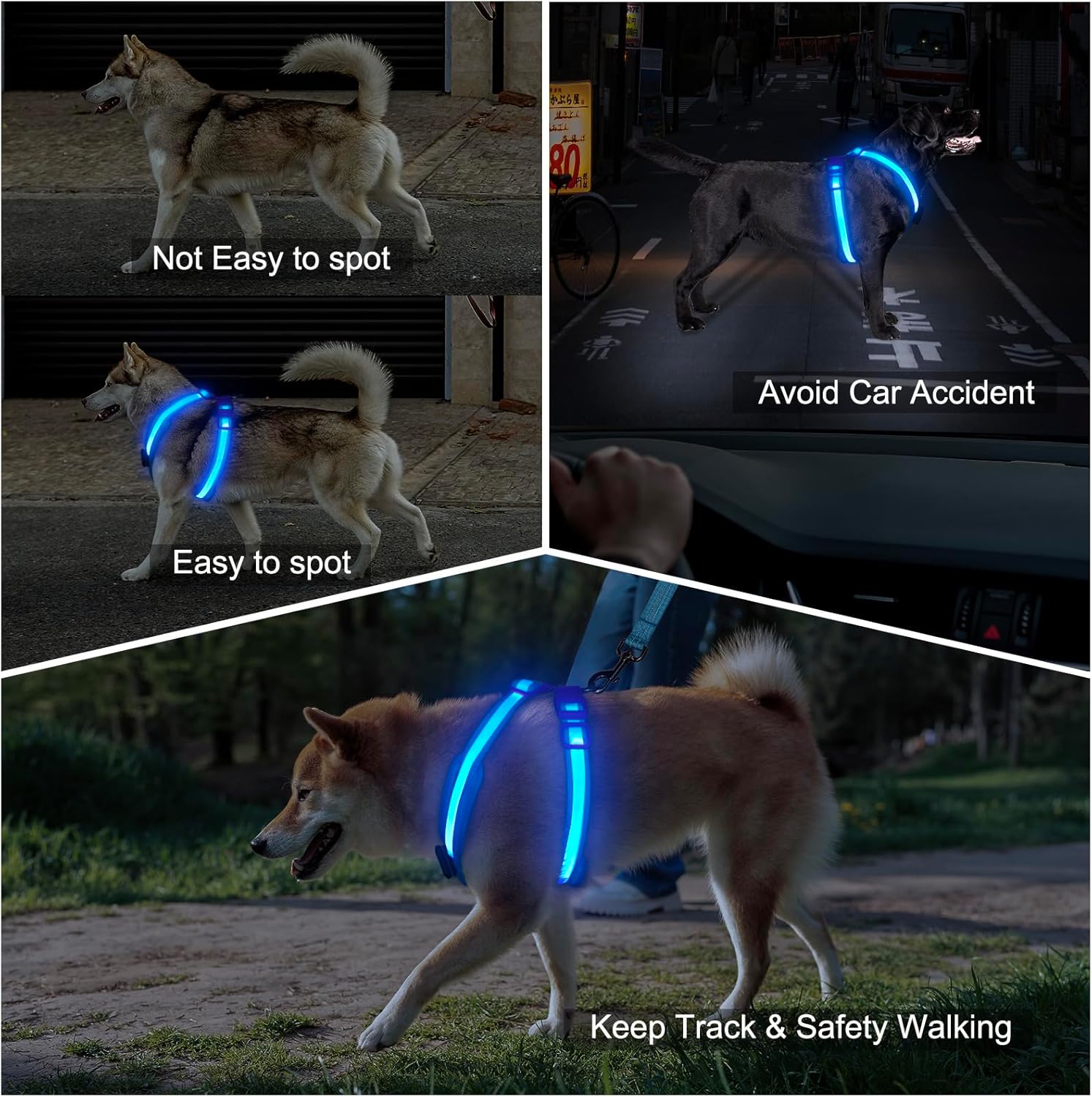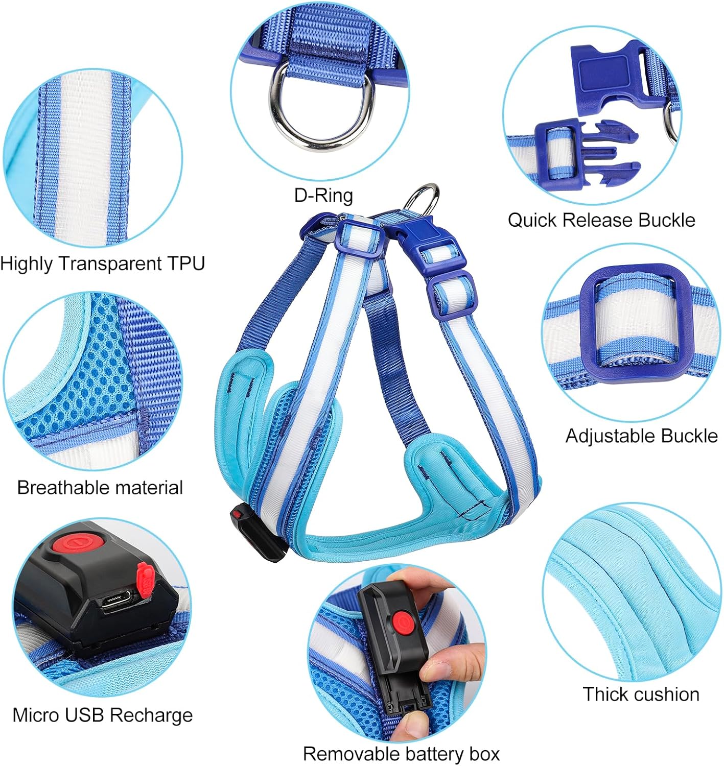Iluminación de 360° y seguridad nocturna: nuestro arnés LED para perro utiliza tiras de TPU altamente transparentes y las últimas cuentas de lámpara ultra brillantes, con una distancia de visión de más de 1,640.4 ft y una eficaz emisión de luz de 360°, lo que puede garantizar eficazmente la seguridad de tu perro cuando camina por la noche. Puede evitar eficazmente accidentes automovilísticos, salvar la vida de tu perro y puedes encontrar fácilmente a tu perro por la noche.