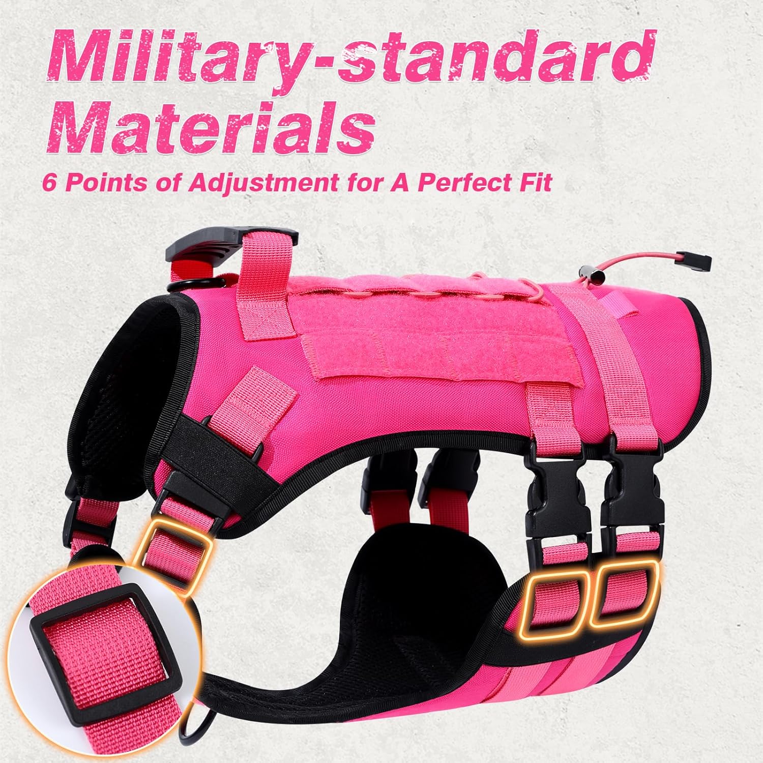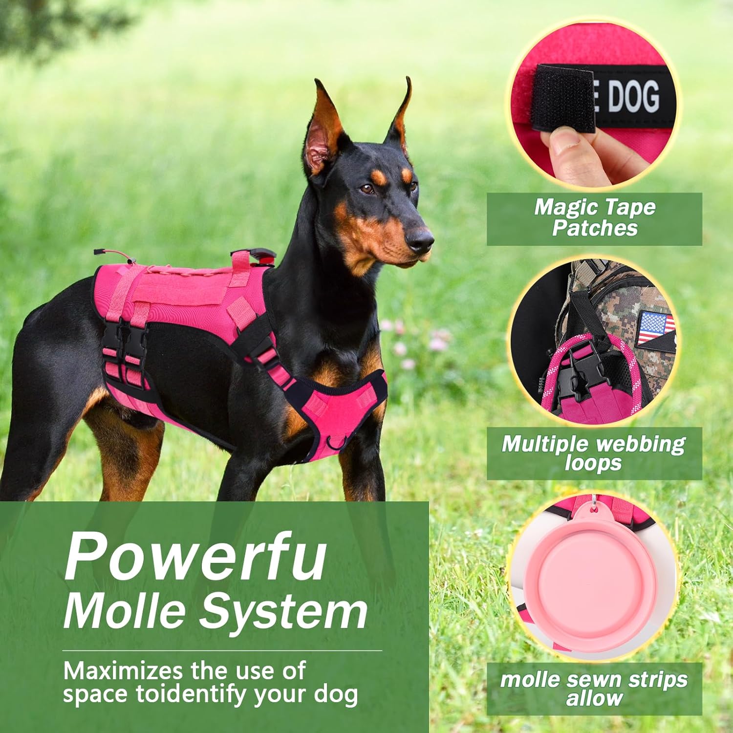 Más espacio de bricolaje Sistema Molle equipado en ambos lados del arnés táctico para bolsas, botellas de agua y equipo al aire libre. Puedes adjuntar insignias personalizadas y parches de moral en los paneles de gancho y bucle. Inserta la tarjeta de identificación en la ranura para identificar a tu perro. Ampliamente utilizado para servicio personal, aplicación de la ley, caza o recreación al aire libre.