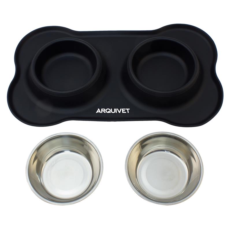 ARQUIVET COMEDERO DOBLE CON BASE DE SILICONA PARA PERROS Y GATOS (2x400mL)