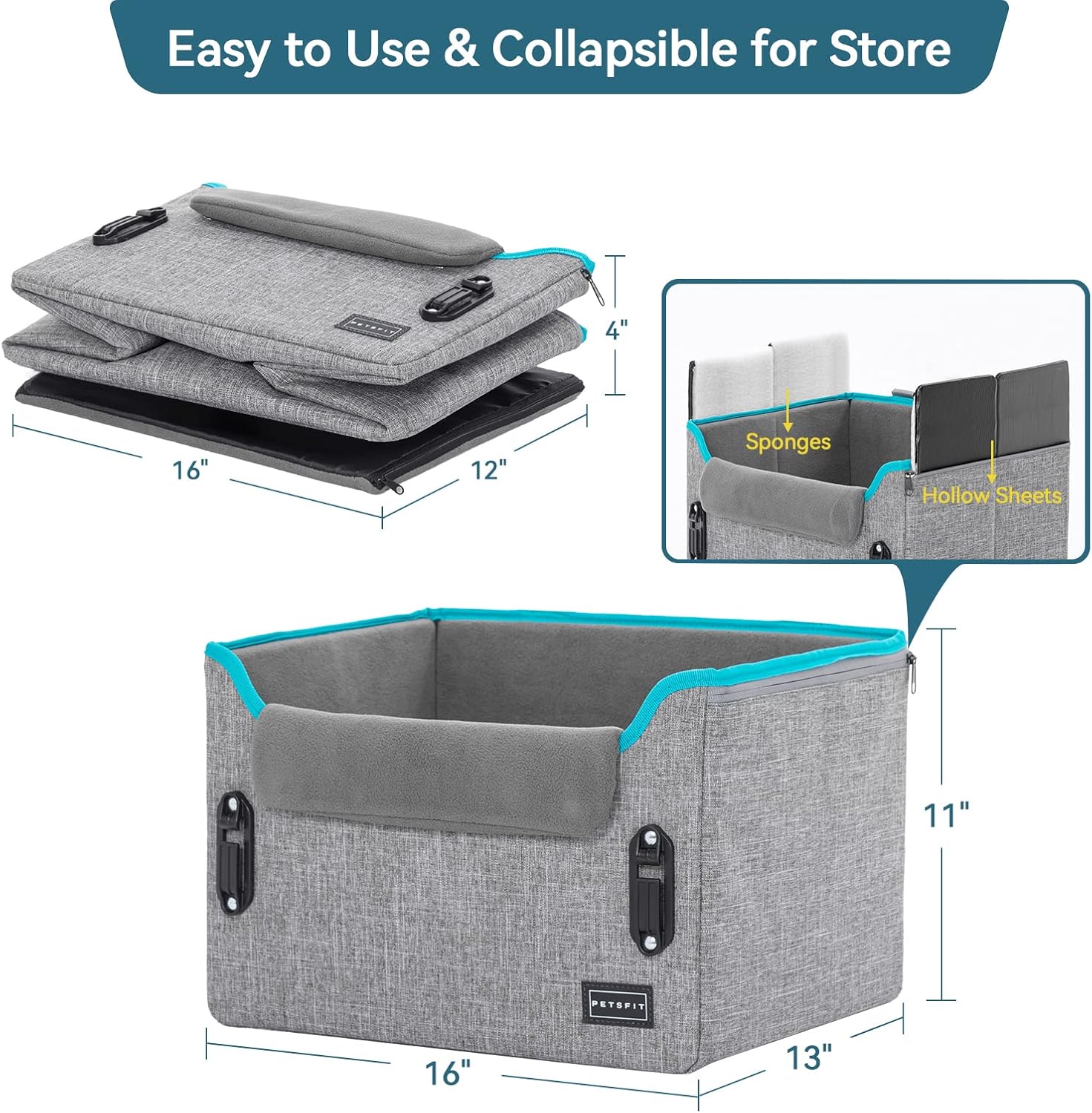 Versátil y ajustable para una mejor visión: no es solo un asiento de automóvil para perros; nuestro producto ofrece múltiples usos, incluyendo dos modos elevados para ajustar la altura en 3.15 pulgadas, lo que garantiza que tu mascota disfrute de una mejor vista del entorno. Este versátil asiento de seguridad de auto para perros también puede transformarse en una acogedora cama para paseos en automóvil o, incluso, para uso en la oficina, por lo que es un accesorio indispensable para los dueños de mascotas.