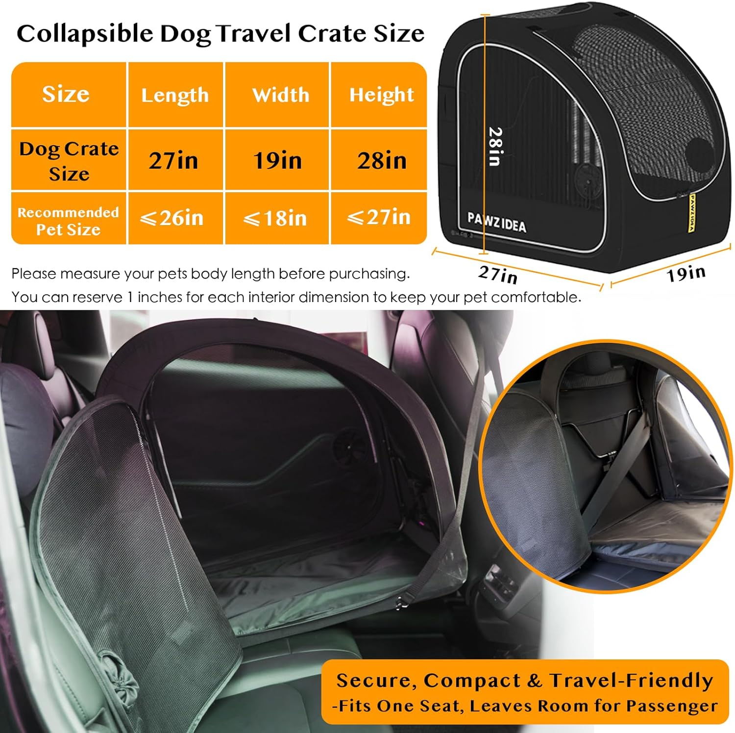 Diseño portátil y plegable: esta jaula portátil para perro para automóvil cuenta con dos interruptores emergentes con anillos de tracción para una configuración rápida y un almacenamiento cómodo. El marco de metal duradero, diseño ligero y plegable, con alfombrilla acolchada de polipropileno resistente extraíble soporta mascotas de hasta 66 libras.