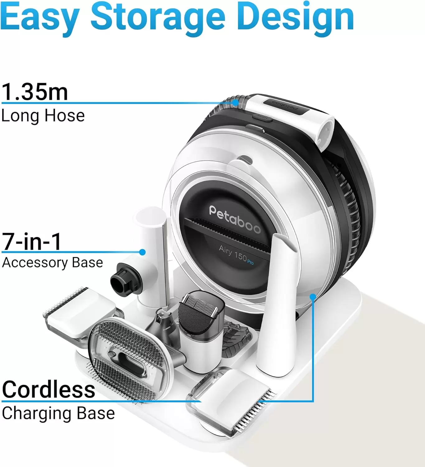 Aseo sin esfuerzo y sin estrés. Este aspirador inalámbrico es ultra silencioso y portátil, haciendo que el aseo de tu mascota sea un proceso rápido y agradable para todos.