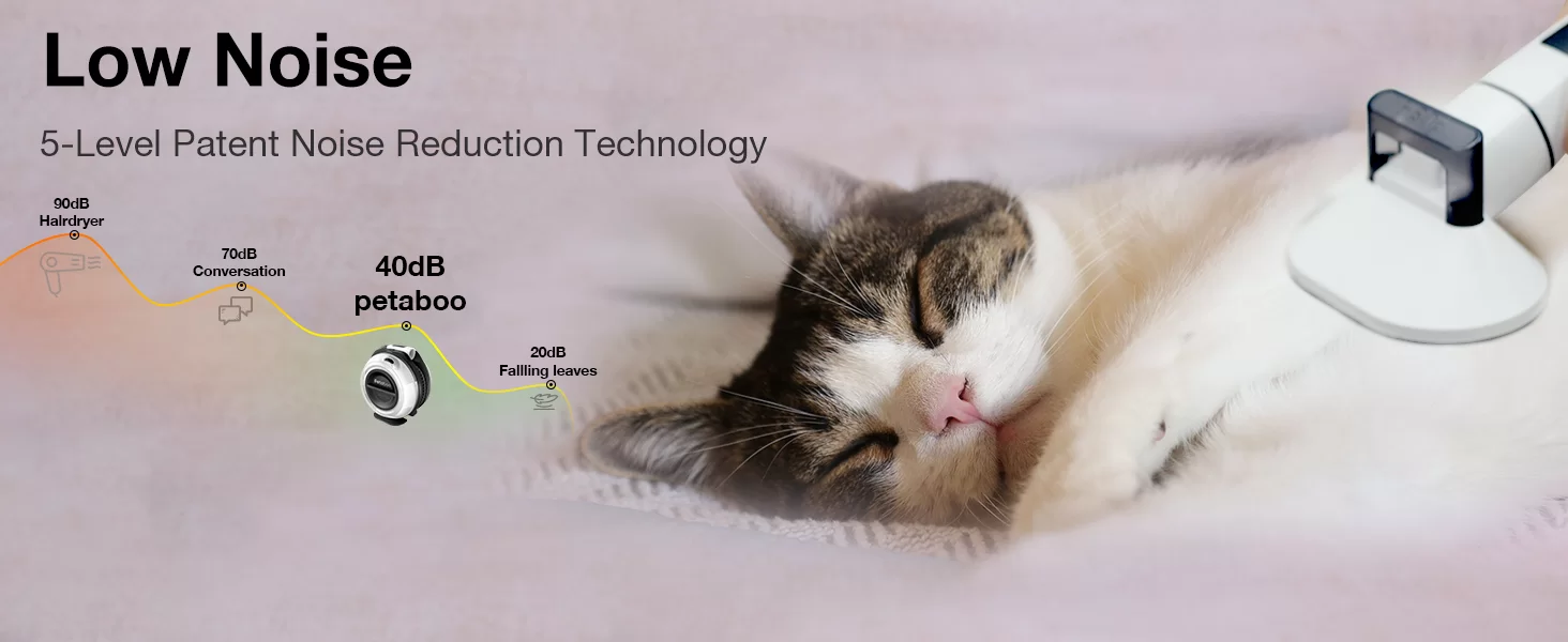 Bajo nivel de ruido y gran capacidad: con un nivel de ruido ultra bajo que comienza en 40 dB, esta aspiradora de pelo de perro garantiza una experiencia silenciosa para las mascotas. La aspiradora de aseo para perros incluye una taza de polvo transparente de gran capacidad de 2.2L que es fácil de instalar, quitar y monitorear para un vaciado oportuno. El diseño de la herramienta de depilación de mascotas que ahorra espacio mantiene el kit de aseo de mascotas organizado y visualmente atractivo.