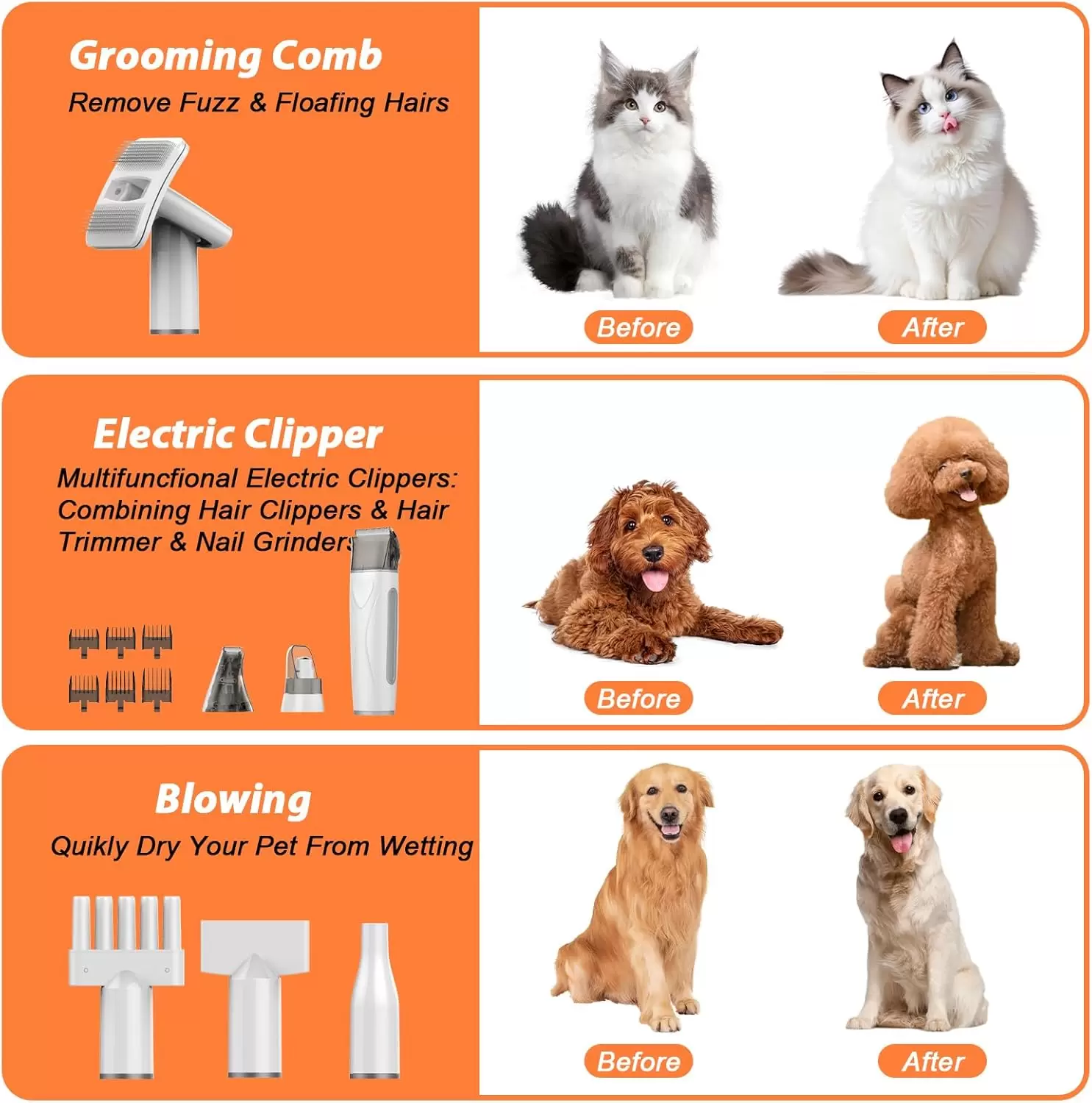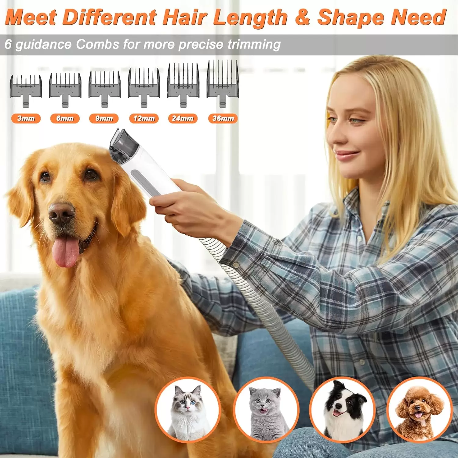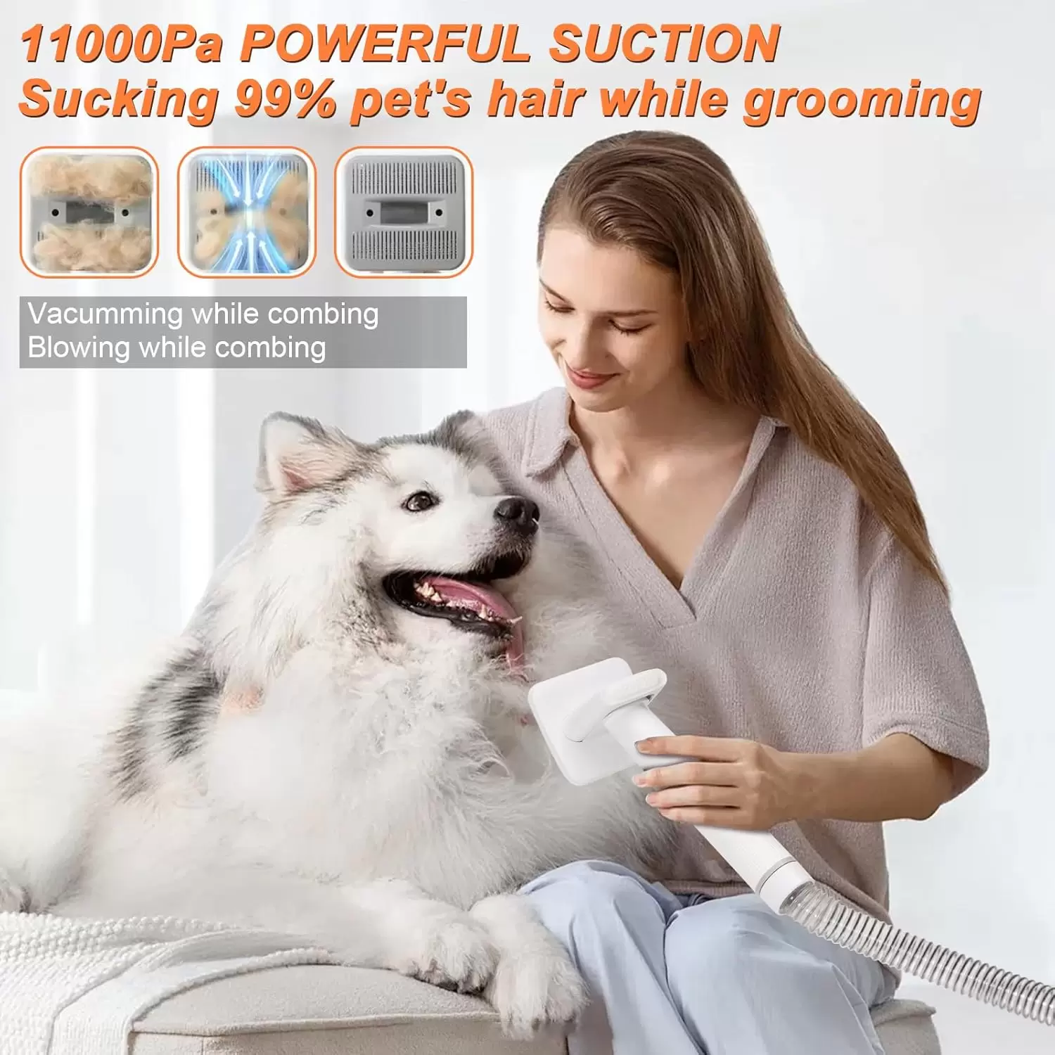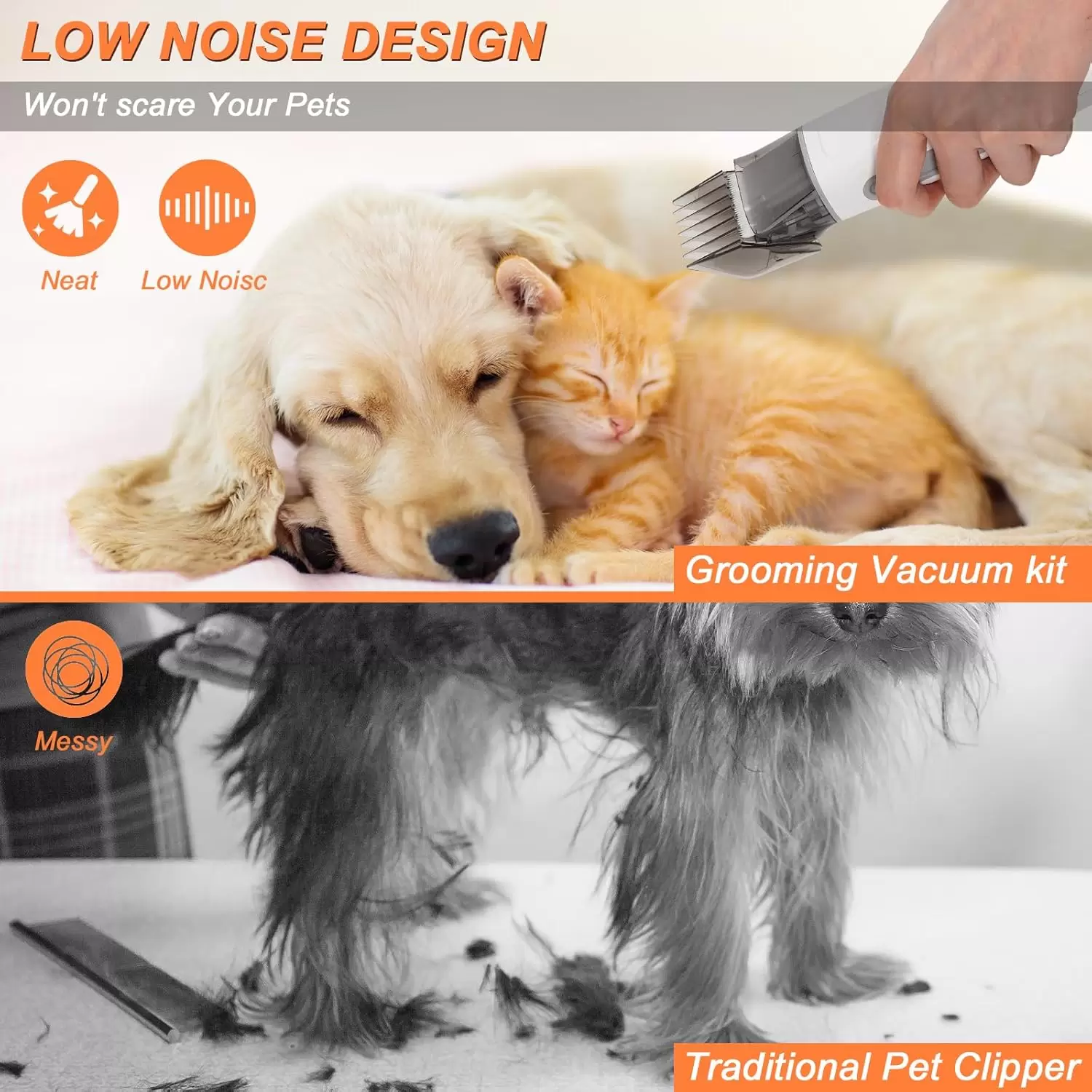 Kit de aseo profesional todo en uno para mascotas — Nuestra aspiradora para perros para el aseo de pelo contiene 10 herramientas profesionales de aseo que pueden ayudarte a peinar y eliminar regularmente el pelo suelto y el pelo enredado de tu mascota. El kit de aseo al vacío para mascotas puede ayudarte a recoger rápidamente el pelo disperso de mascotas, lo que permite que tu perro y gato disfruten de una experiencia profesional de aseo de mascotas en casa mientras ahorra tiempo de limpieza, manteniendo tu hogar o entorno de trabajo limpio y ordenado.