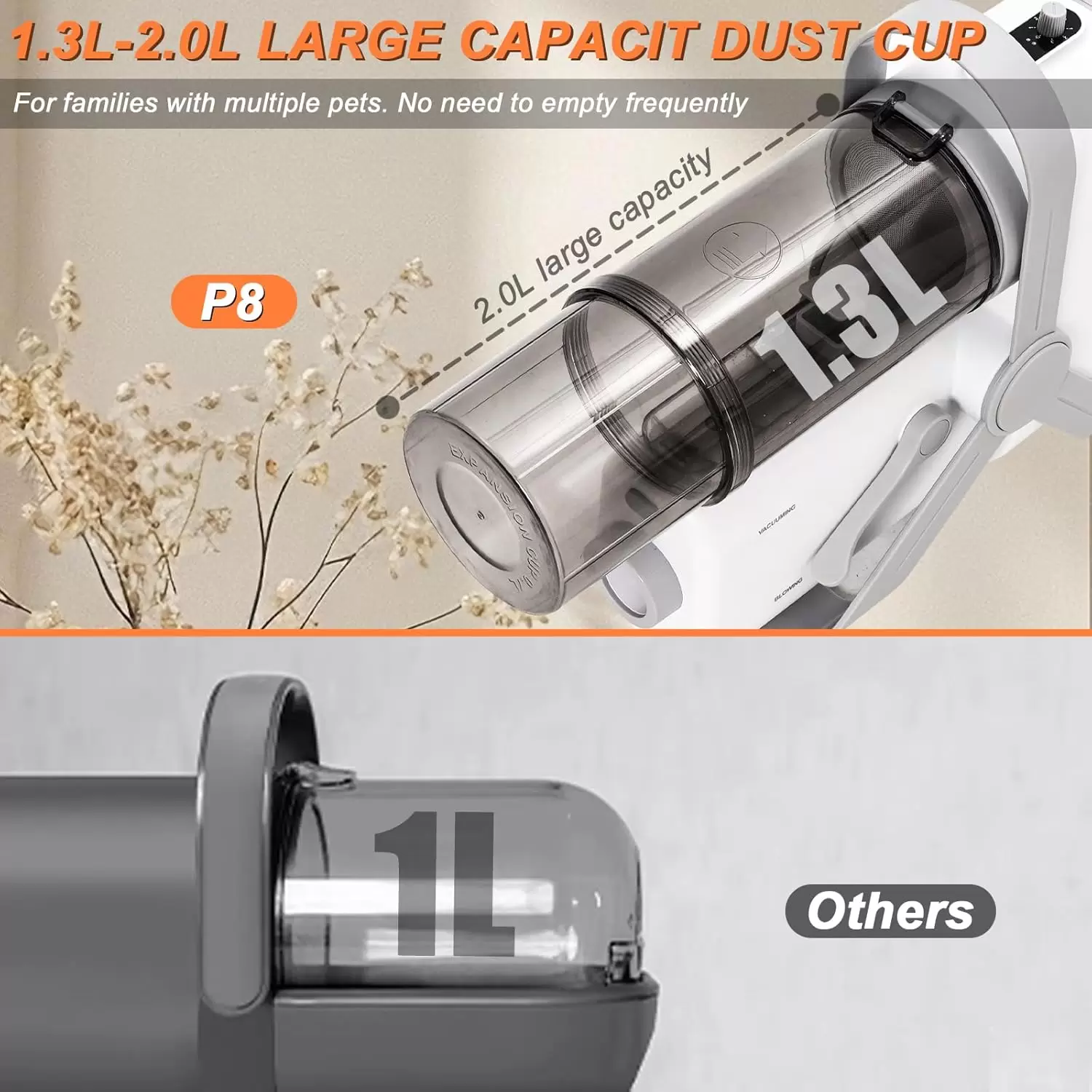 [Cubo de basura vacío fácil y fácil de almacenar] — Con una caja de polvo desmontable de 0.7 L, más capacidad que otras. La taza de polvo extraíble está equipada con una tapa fácil de vaciar para un vacío rápido y sin desorden después de la limpieza. El dispositivo se destaca con función de ahorro de espacio, con bolsas de almacenamiento para un fácil almacenamiento