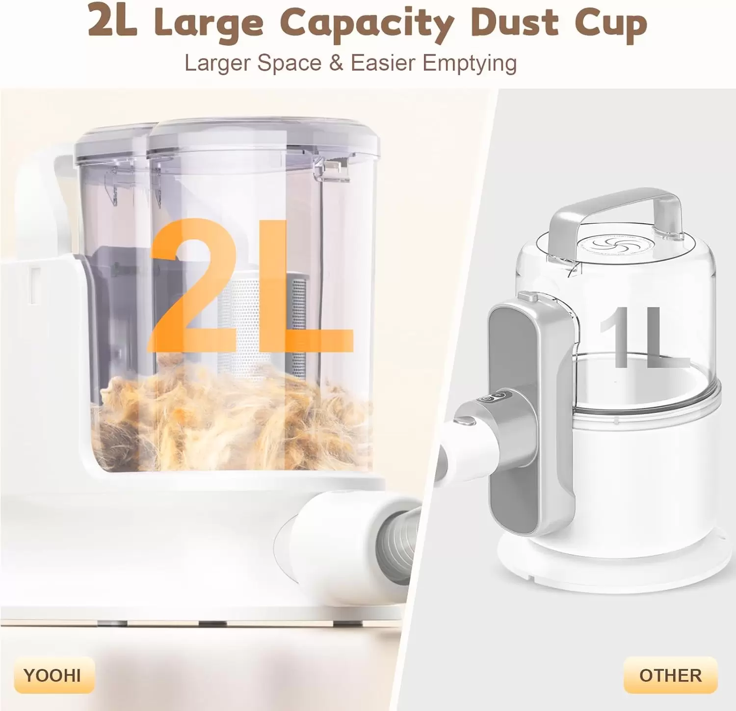 Cubo de basura fácil vacío: el kit de aspiradora de aseo para perros viene con una taza de recolección de polvo mejorada de 2 litros y una manguera más gruesa, para que puedas terminar de arreglar de una sola vez, ya sea varias mascotas o un perro grande.