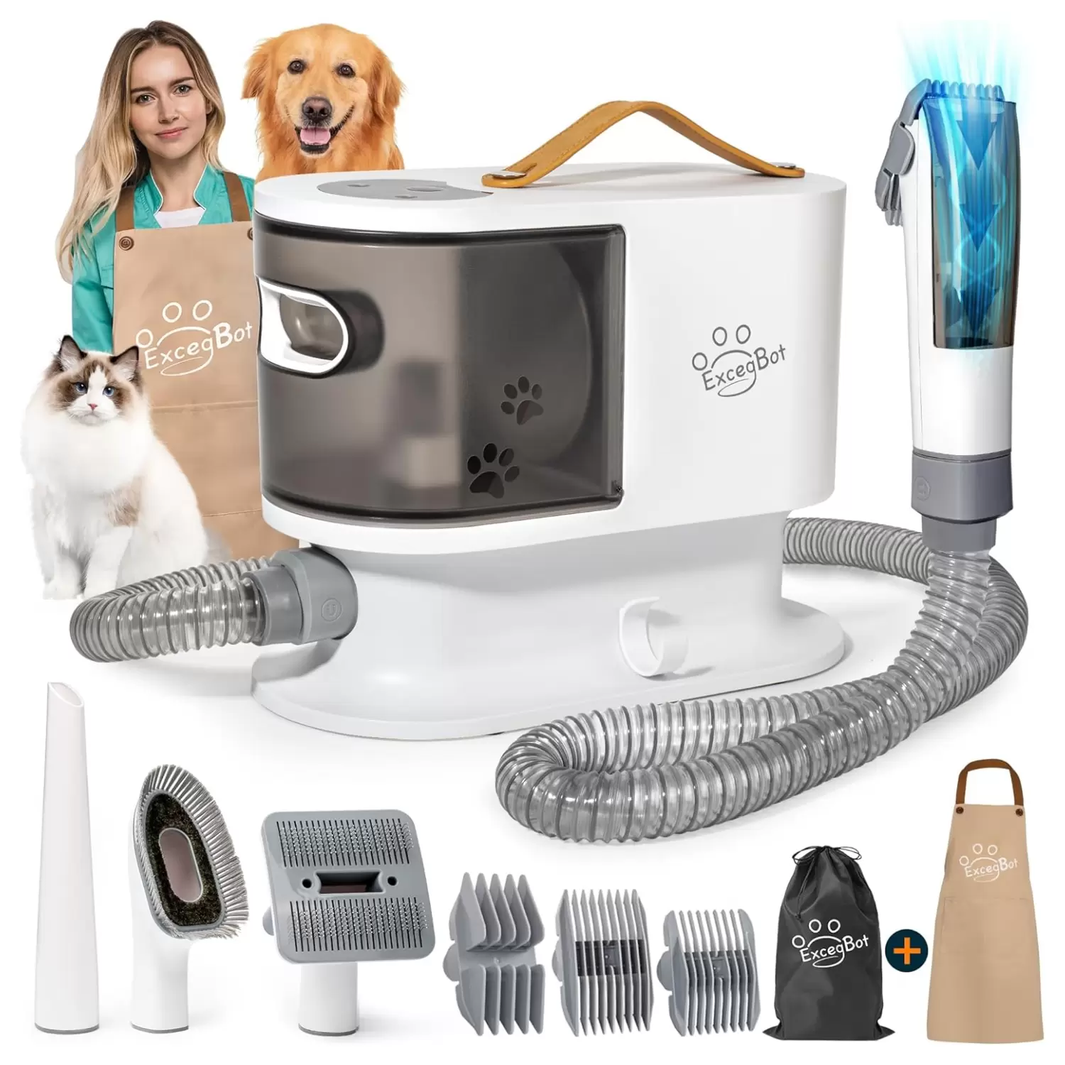 Nota: esta aspiradora de aseo para mascotas ExcegBot está diseñada para su uso con sistemas de alimentación de 110 V-130 V/60 Hz; cuenta con una función de protección contra sobretemperatura. Cuando la temperatura alcanza los 230 °F, cortará automáticamente la energía para garantizar la seguridad