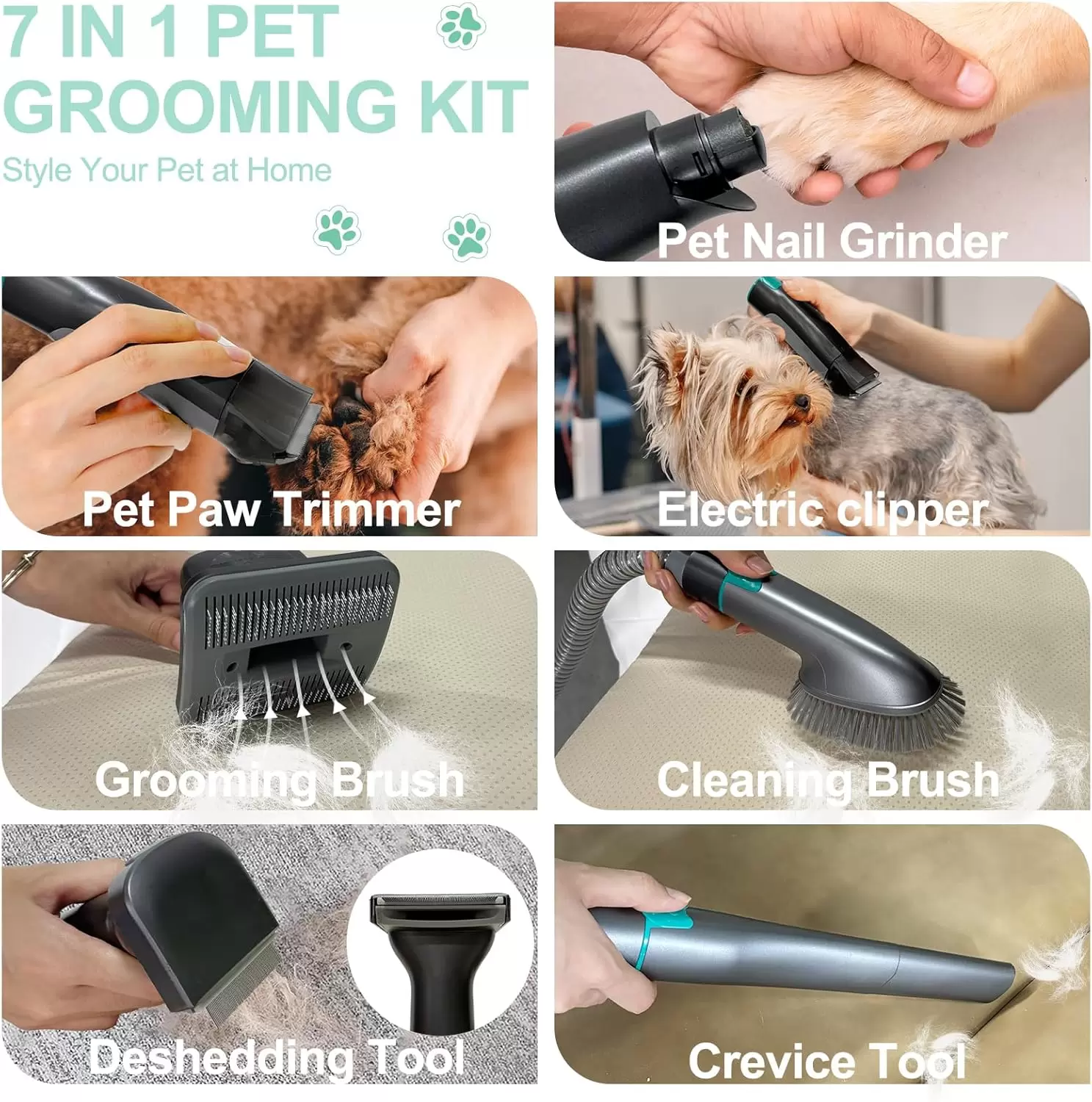 Aspiradora de Pelo para Perros y Gatos – Kit de Aseo 7 en 1 con Cortapelos Profesional
