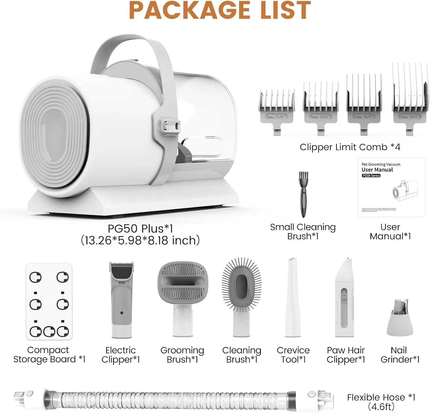 Aseo profesional en casa con este kit 7 en 1. Aspira el pelo suelto y cuida a tu mascota con resultados de peluquería, dejando tu hogar impecable.