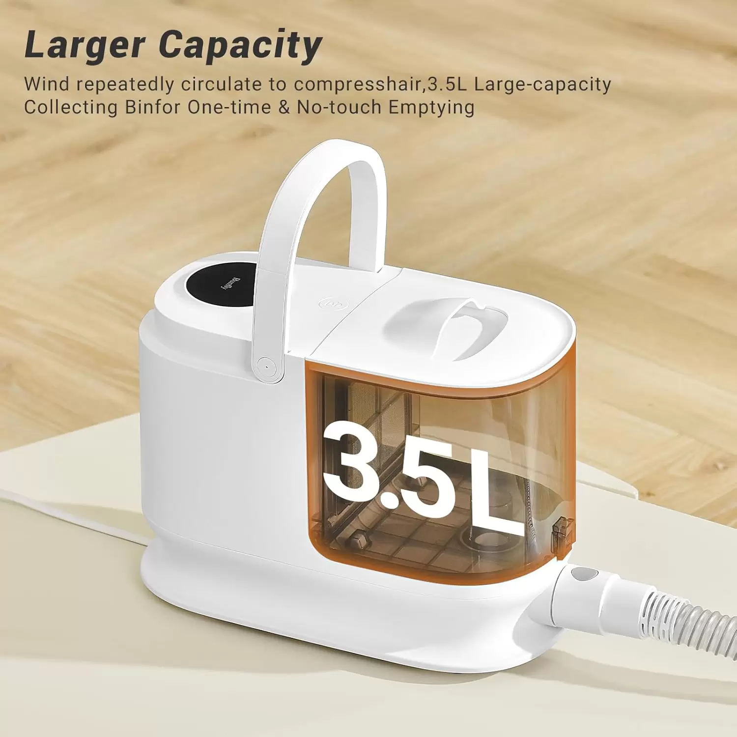 【Vaso antipolvo de gran capacidad】 Bunfly está equipado con una taza de polvo de 3.5 litros, que tiene una mayor capacidad para reducir la frecuencia de limpieza de la taza de polvo y mejorar la eficiencia de recorte. Incluso si tienes una mascota de pelo largo, no necesitas vaciarla con frecuencia al prepararla. Simplemente abre el colector de cabello con un dedo para completar la limpieza sin contacto del colector de cabello. Limpio, ahorra tiempo e higiénico.