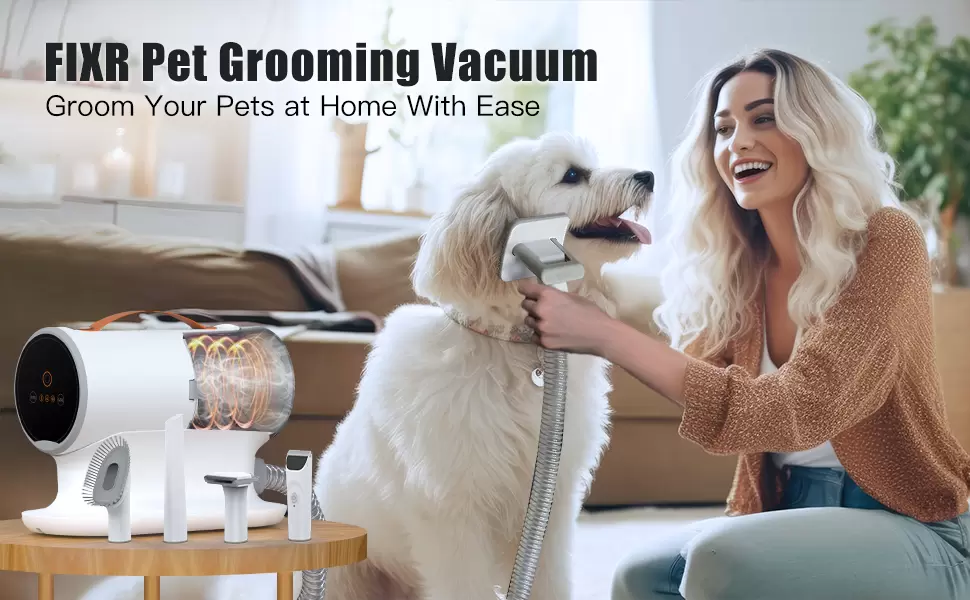 Aseo profesional en casa. Este kit 5 en 1 aspira el pelo con su potente succión de 12000 Pa, dejando tu hogar y a tu mascota impecables.
